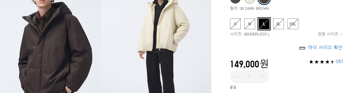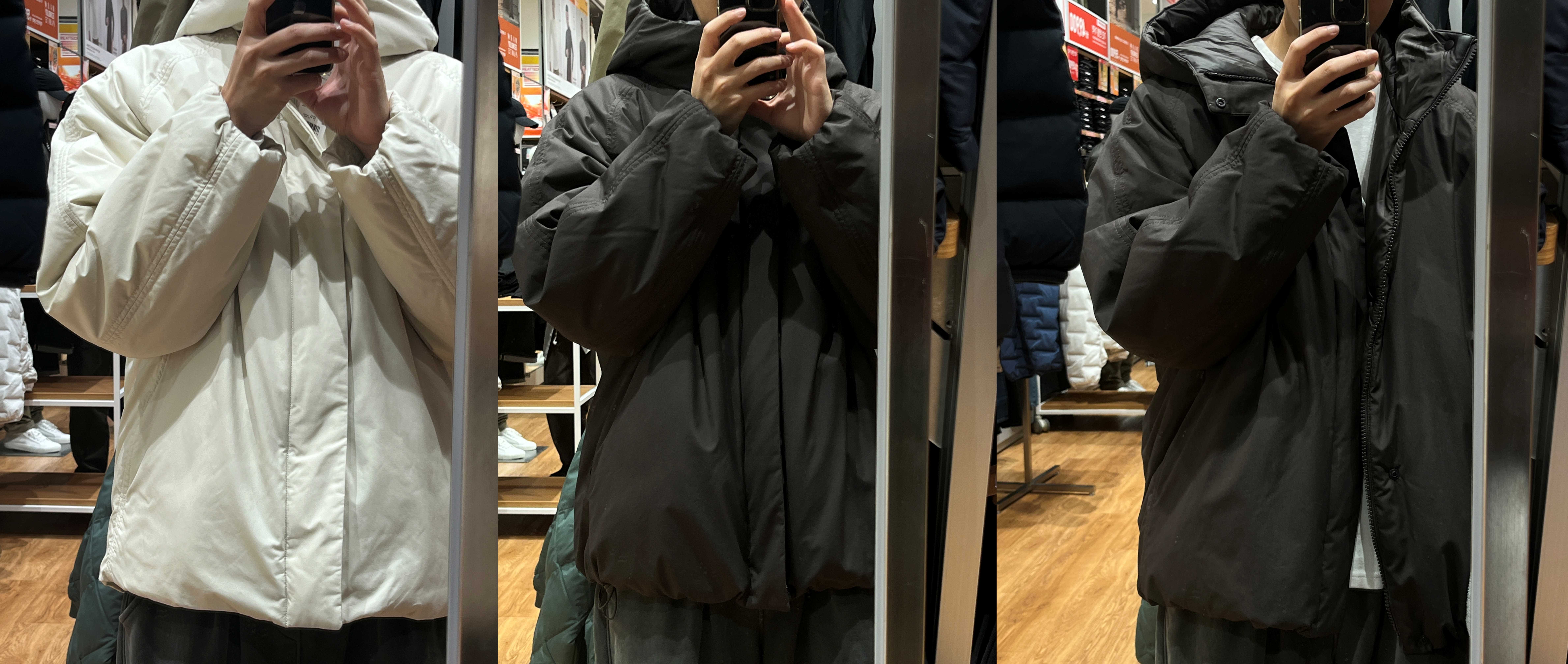 유니클로 U 라인임에도 나왔을 때는 별 관심이 없었는데 날이 추워지면서 뒤늦게 인기가 많아진 모양. 처음 출시됐을 때 입어보고, 이후에도 매장에 L 아이보리랑, XL 다크브라운이 있어서 입어봤다.