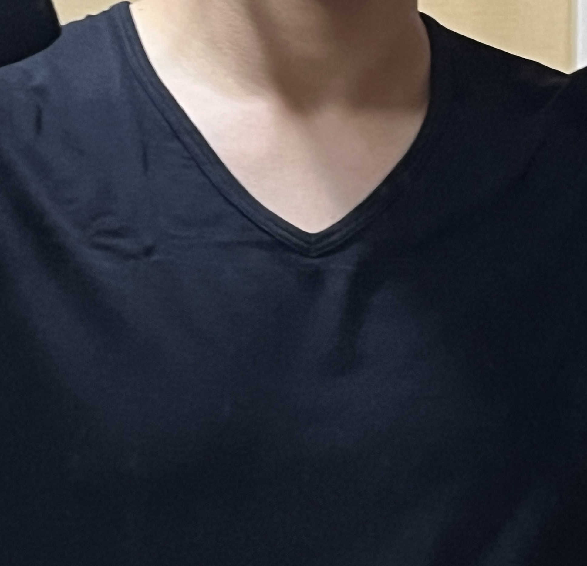 브이넥은 그렇게 깊게 파이거나 그러진 않았는데 몇 번 빨면 늘어나지 않을까 싶기도 한다. 개인적으로 스파오 웜테크가 제일 만족스러운 듯