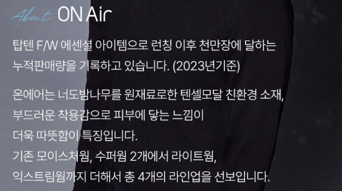 온에어는 너도밤나무를 원재료로한 친환경 소재라 부드러운 촉감이 큰 특징이라고 한다.