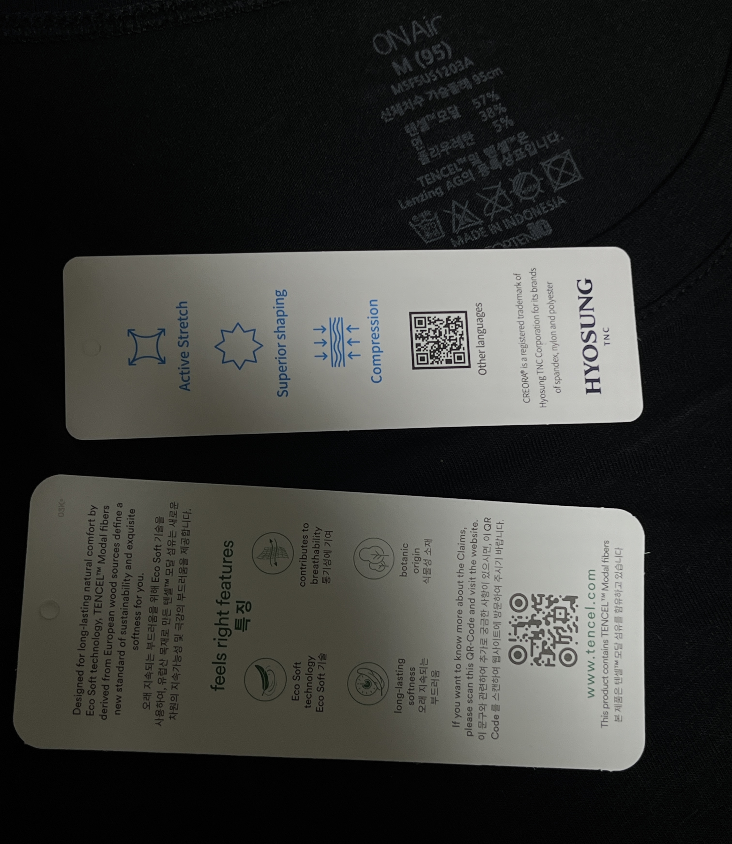 실측이 좀 딱 맞나 싶었는데 몇 번 빨면 늘어난다는 얘기와 함께 내의는 너무 널널해도 옷 입기 힘들 것 같아서 M 사이즈로 샀다. 그리고 소매가 밖으로 튀어나올 때도 있는 게 싫기도 했음.