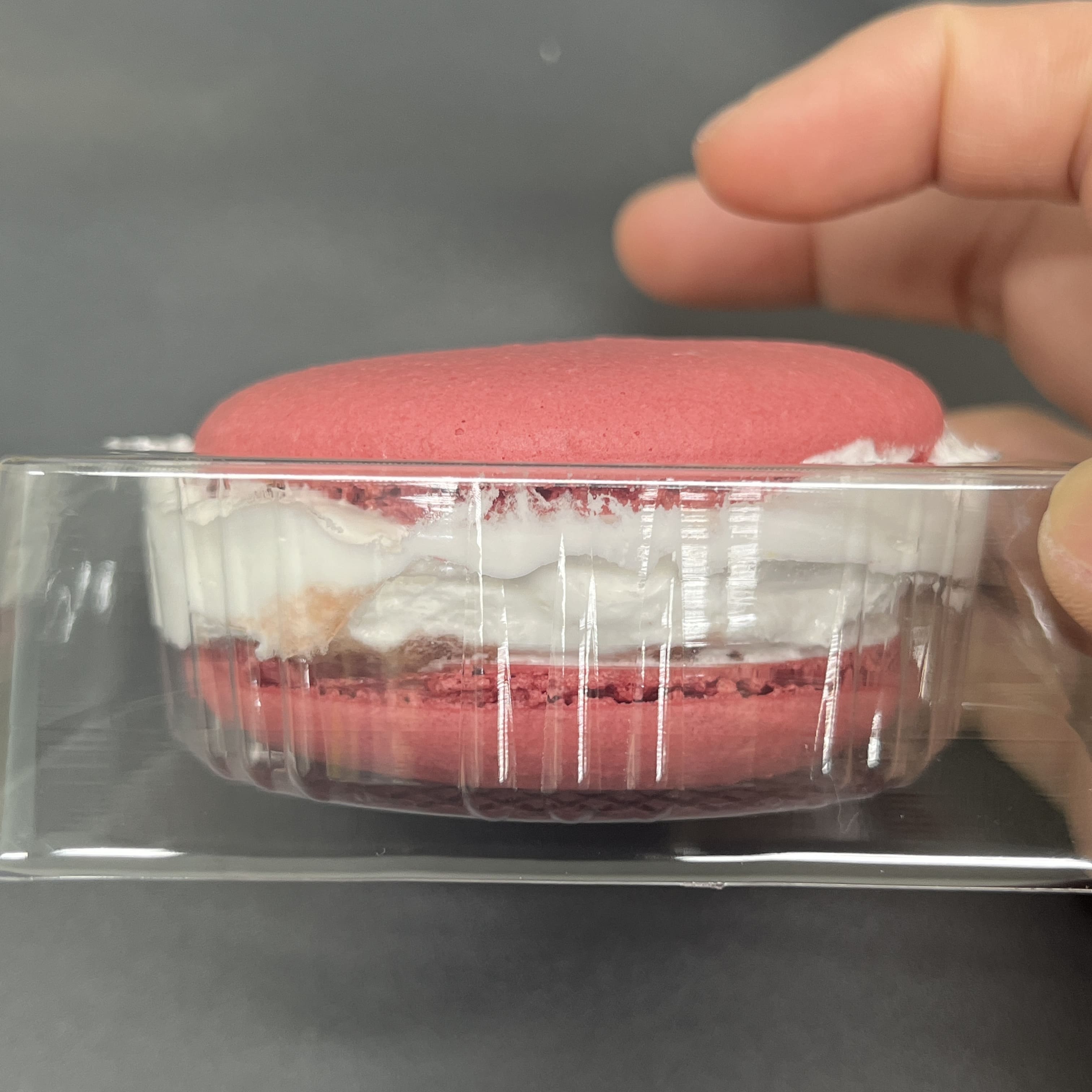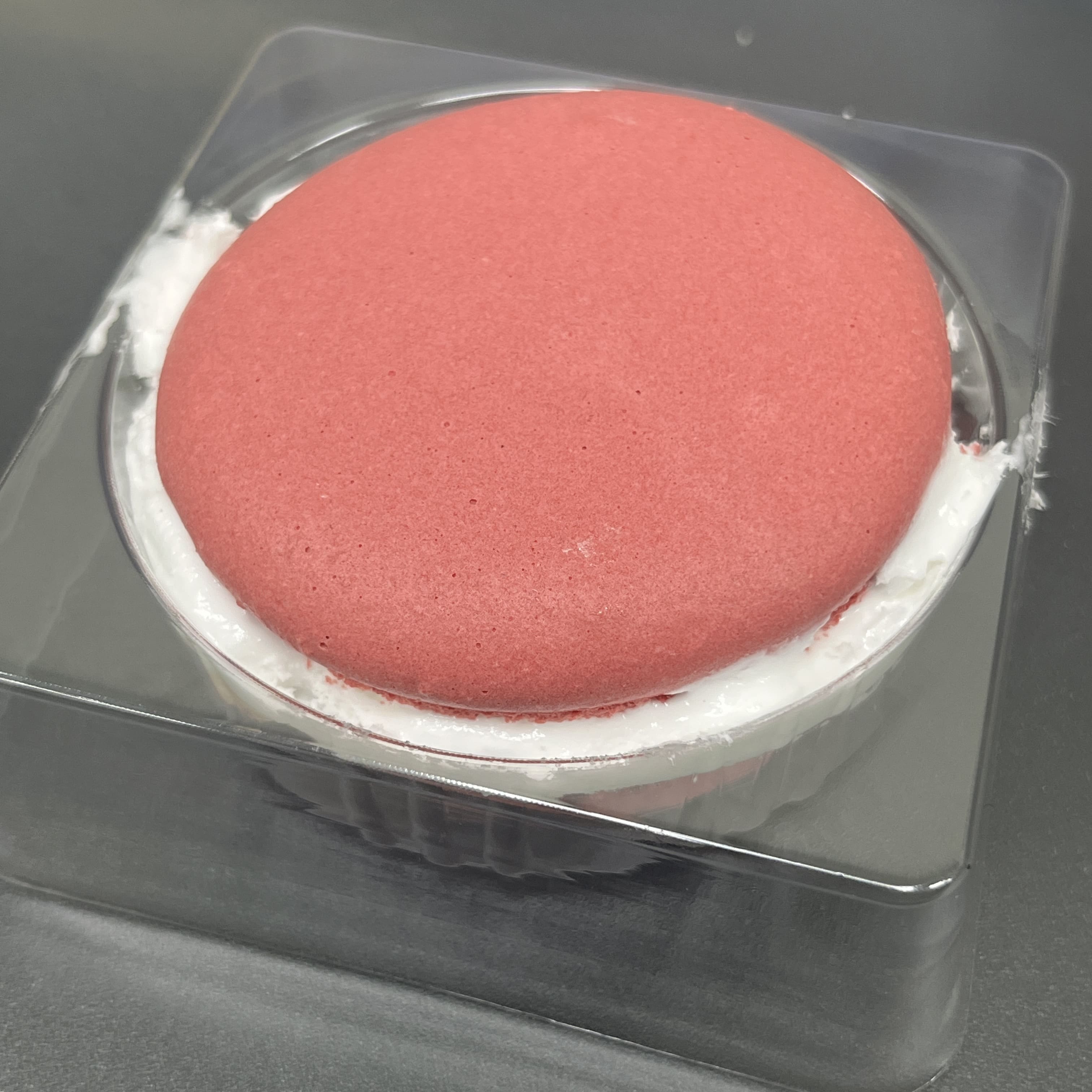 베리마시멜로우카롱 포장을 뜯으면 이 정도, 조그마한 마카롱 2개 반 정도 합친 느낌이랄까. 옆면은 두툼한 느낌인데 필링이 마시멜로우랑 라즈베리랑 섞여서 그런지 단단한 필링이 아니라 흘러내는 크림이다. 그래서 꾹 눌러서 옆으로 나와서 좀 꺼낼 때 힘들었고 무조건 필링이 손에 묻었음