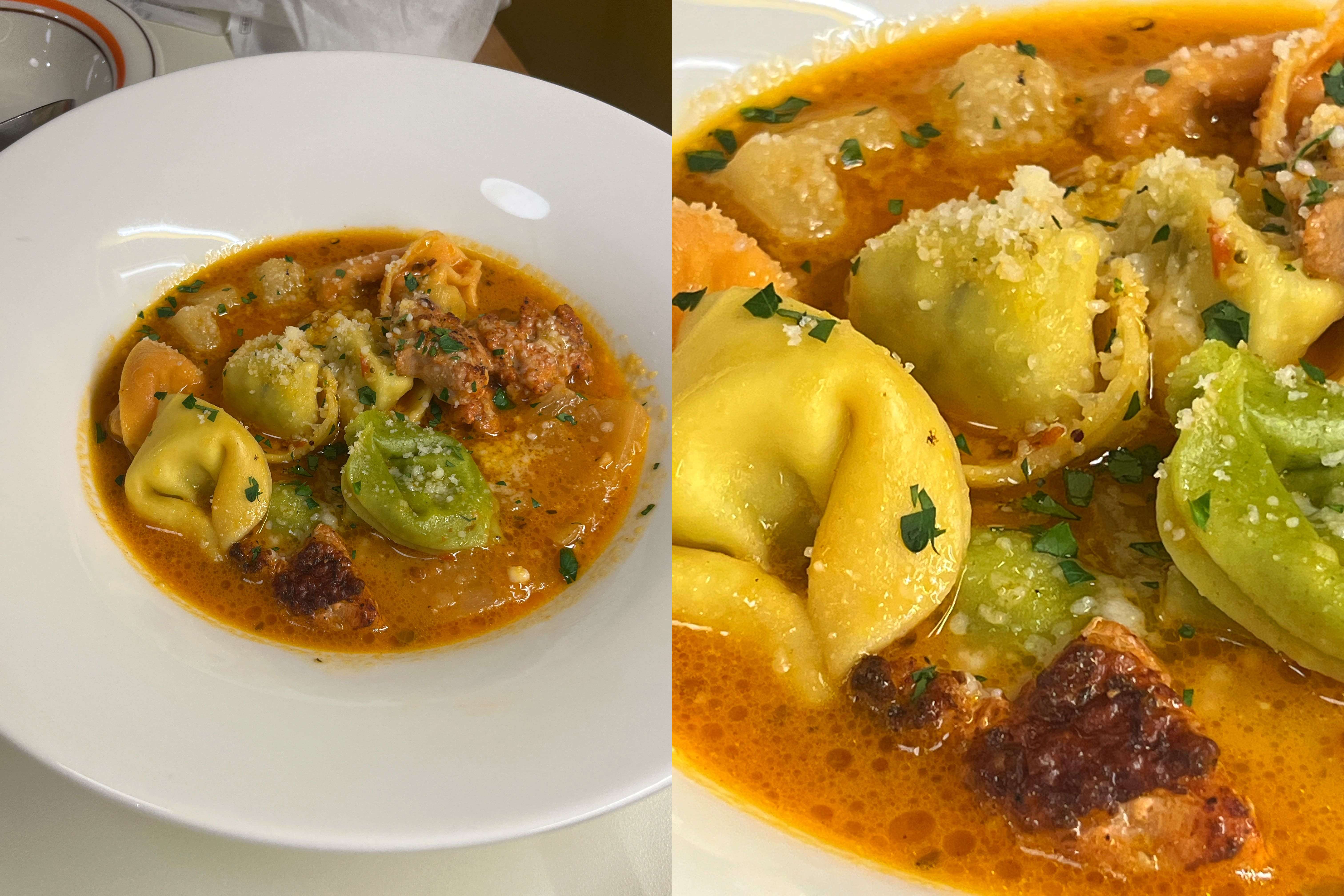 설명엔 상큼하고 시원한 토마토소스에 국산 닭다리살, 감자, 버섯 그리고 생면 또르뗄리니라고 쓰여있다. 딱 받으면 면이 만두같이 생겼네라고 느꼈는데 제철 재료로 속을 채운 만두형 생면 파스타의 종류 중 하나라고 한다.
