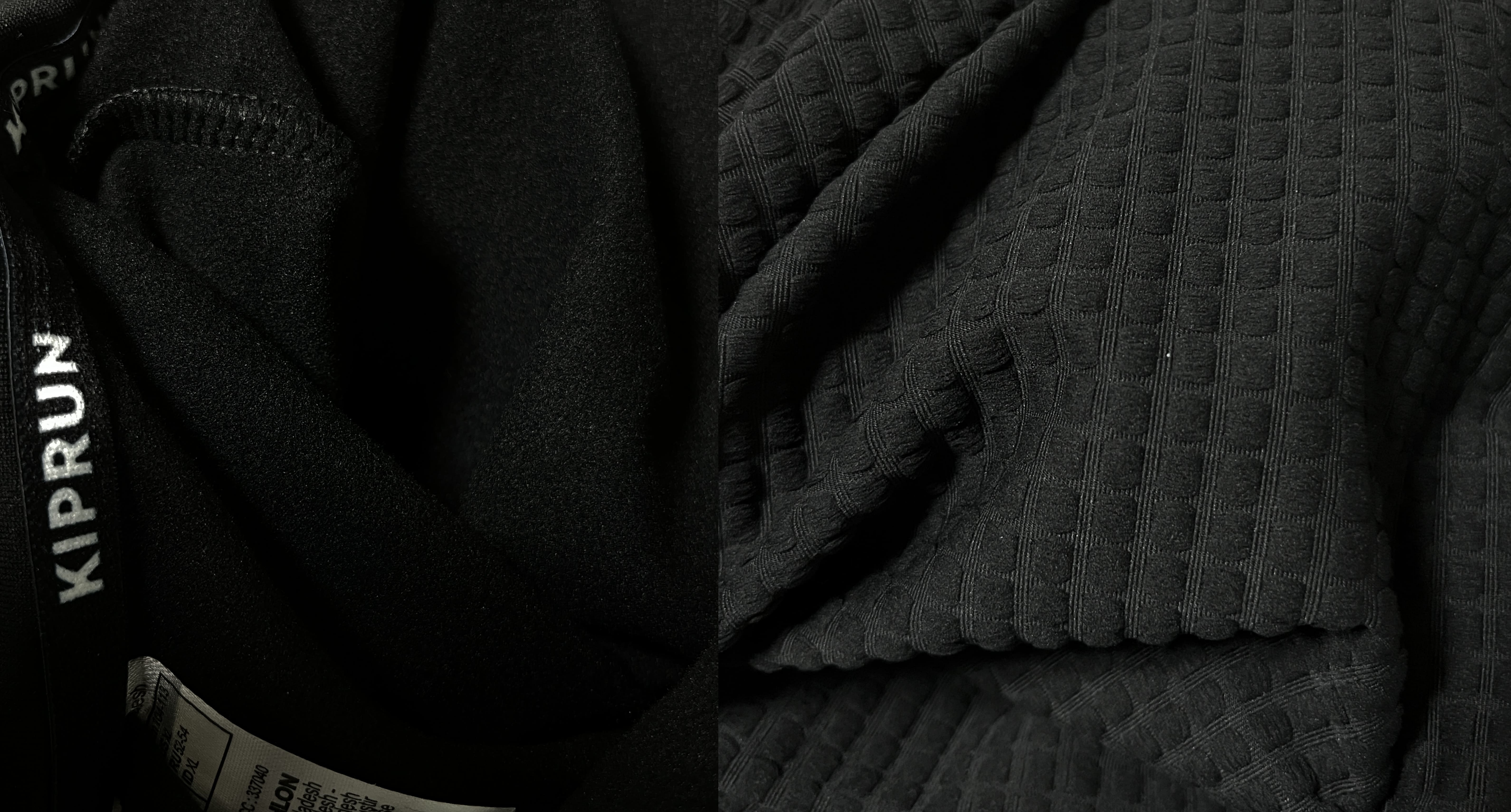 외관상 런 업 100과 디자인의 큰 차이는 없는데 다만, 가운데에 라인이 있음. 이는 옷 가운데 기준으로 위쪽과 아래쪽 안감 소재가 다르기 때문이다.