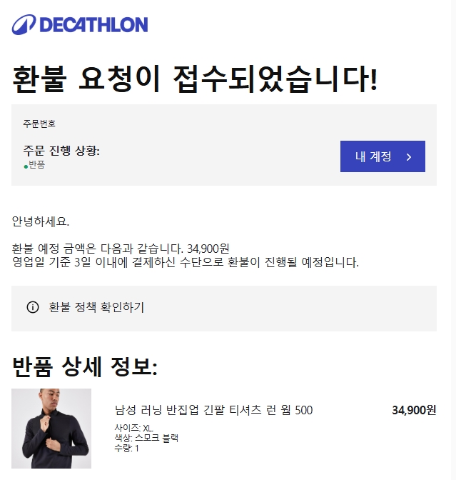 얼마 전에 구입한 데카트론 러닝 반집업 런 웜 500. 매장에는 없어서 온라인으로 주문했는데 사이즈가 컸다. 그래서 반품하게 됨. *러닝 반집업 런 웜 관련 후기는 이전 포스팅 참고