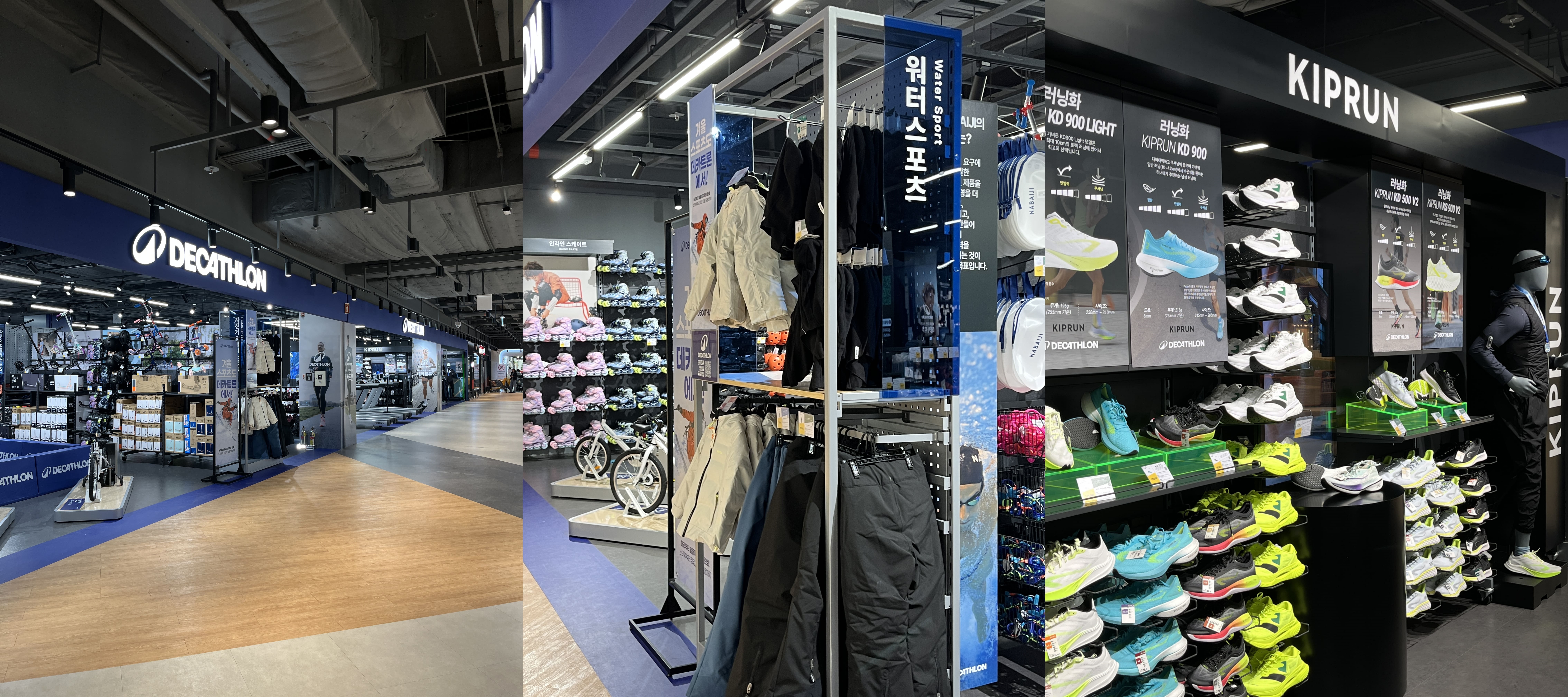 데카트론 매장은 취급하는 물품이 많아서 매장 크기가 꽤 큰 편이다. 러닝뿐만 아니라 스키, 보드, 수영, 자전거 등 전반적인 스포츠와 관련된 물품을 판매하고 있다.