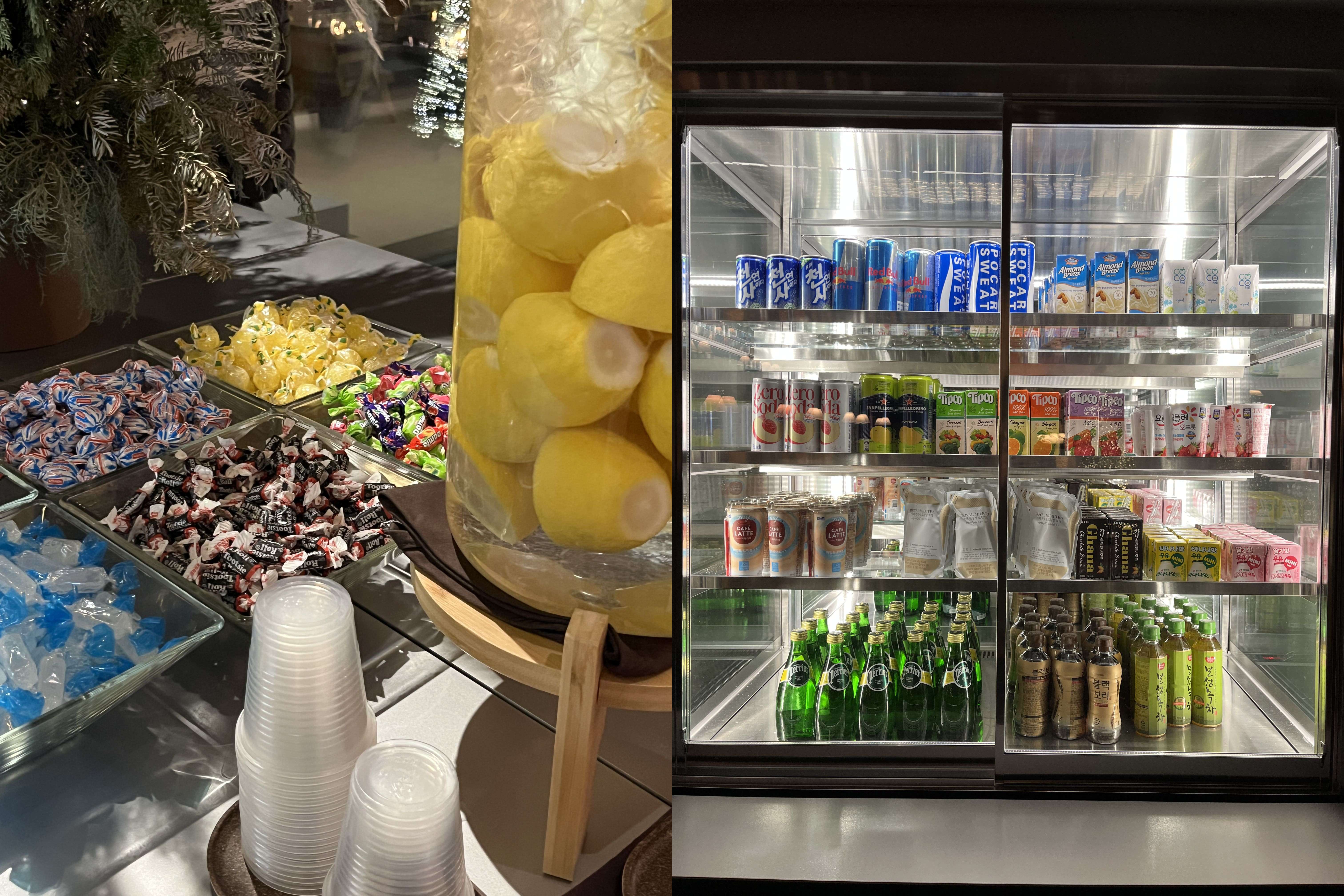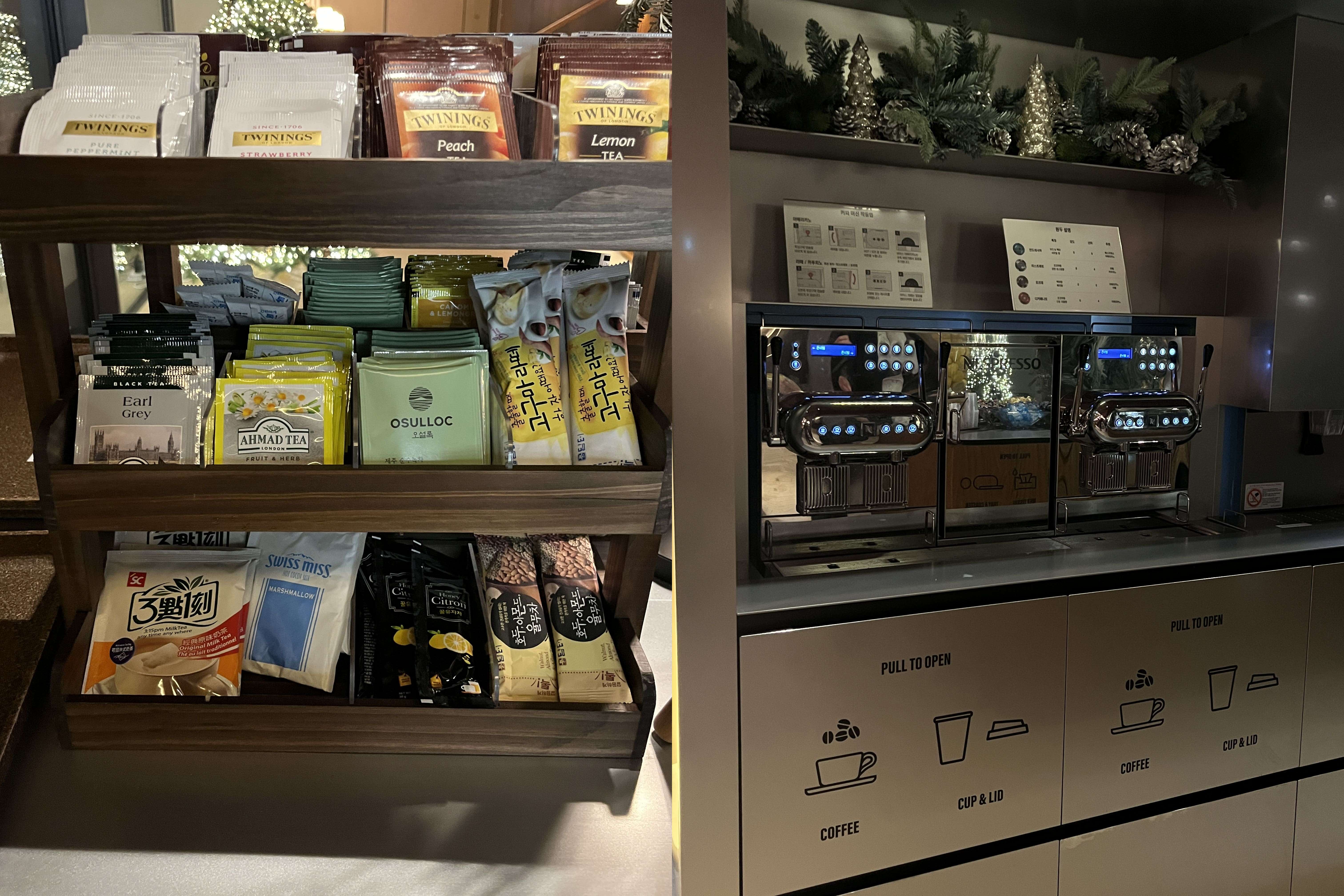 탄산수, 바나나우유, 밀크티, 초코우유와 각종 티, 커피, 사탕 등이 무료다. 또한, 홀 좌석엔 담요도 있었고 층고도 높다. 책은 만화책도 있도 예술 관련 서적도 많았다. 홀 기준에서 왼쪽으로 가면 또 다른 공간이 있으며 거기에도 서적들이 있다.