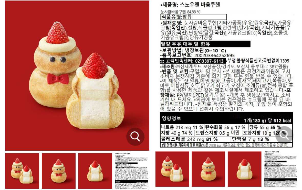 가공유크림, 설탕, 식물성크림. 그냥 크림과 설탕덩어리라 그런지 포화지방과 콜레스테롤, 당류, 지방까지 굉장히 높다. 생긴 건 그냥 귀엽게 생김. 진열된 것만 봐도 상품 사진이랑 똑같다. 다만, 가격이 9,500원이라 싼 것도 아니다.