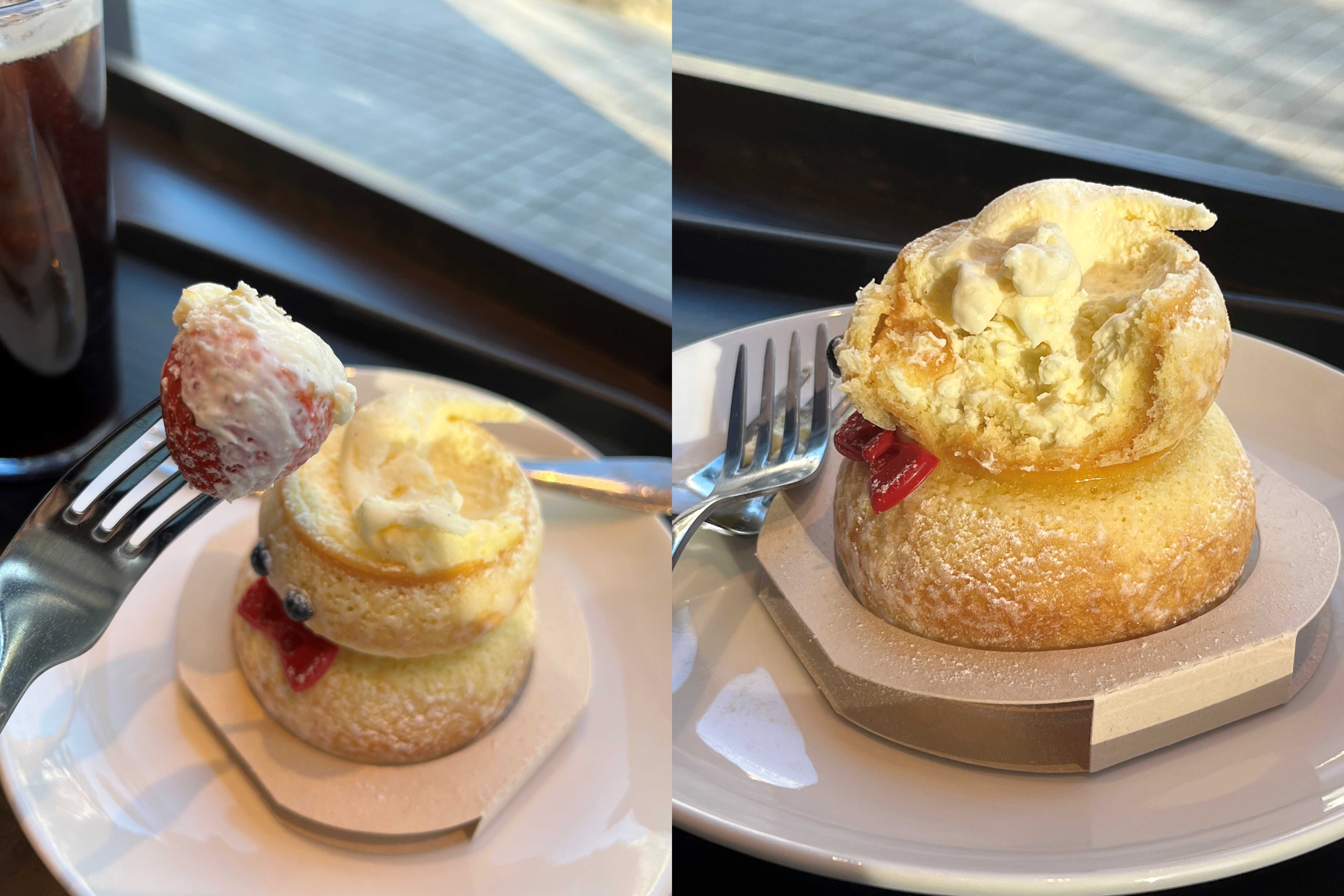 딸기는 슈크림에 둘러쌓여있고 콕 집어먹는다. 빵은 슈가파우더로 절여진 듯. 그래서 설탕맛이 강했는데 단 맛이 많이 강했다. 게다가 안에 슈크림도 다니까 단단이었음. 내부엔 그냥 슈크림만 있다. 그 아래칸도 슈크림으로 찼다.