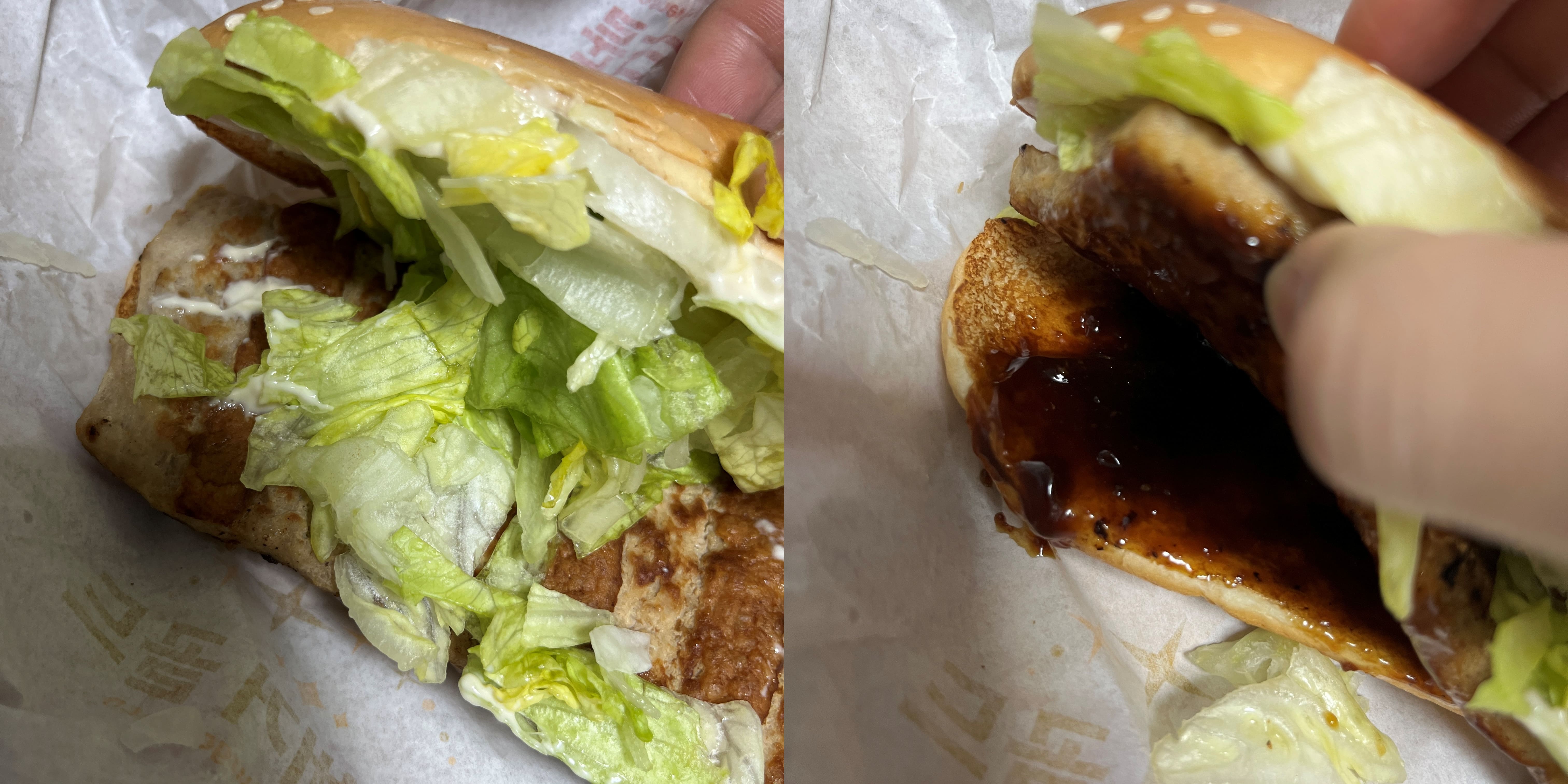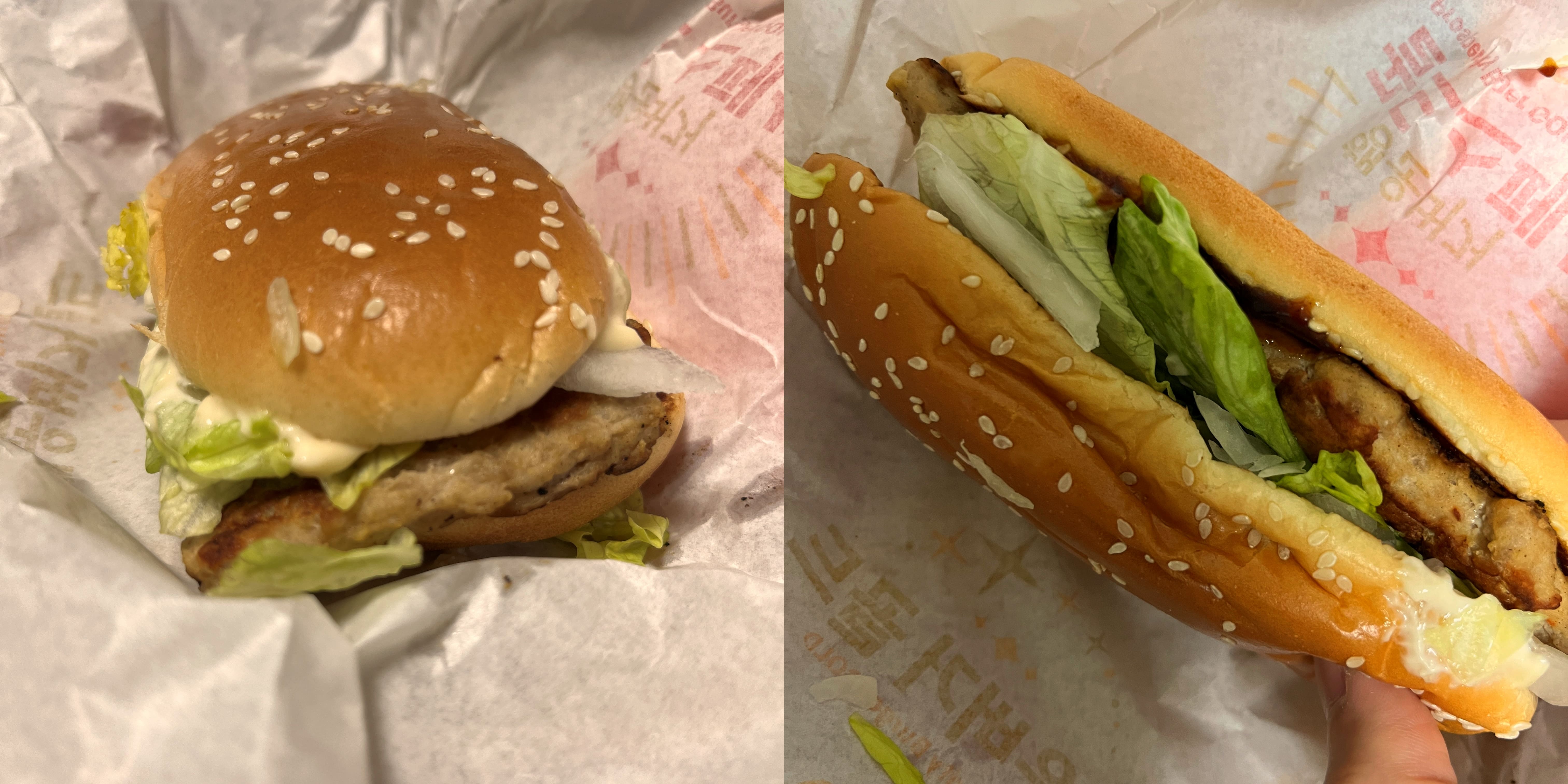양상추와 돈육 패티, 갈릭 소스가 있고, 그 외에는 없다. 특별할 거는 없는 그냥 기다란 불고기 버거.