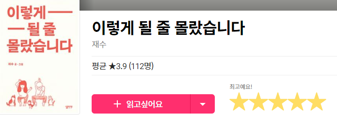 개인적으로 나는 원래 이런 류의 책을 별로 좋아하지 않았다. 좀 더 정확히 말하면 도서관에서 빌려 가볍게 읽기엔 좋다고 생각하지만, 그 이상에 매력을 느끼기는 힘들었다. 최근 무분별하게 유행처럼 퍼진 감성 에세이나 SNS에 올렸던 4컷 툰을 모아서 출판한 책들에 영향인 것 같다. 모든 책이 그런 건 아니지만, 유행에 휩쓸려 그냥 자본을 쫓는 느낌이 드는 책들도 종종 있는 것 같았기 때문이다.