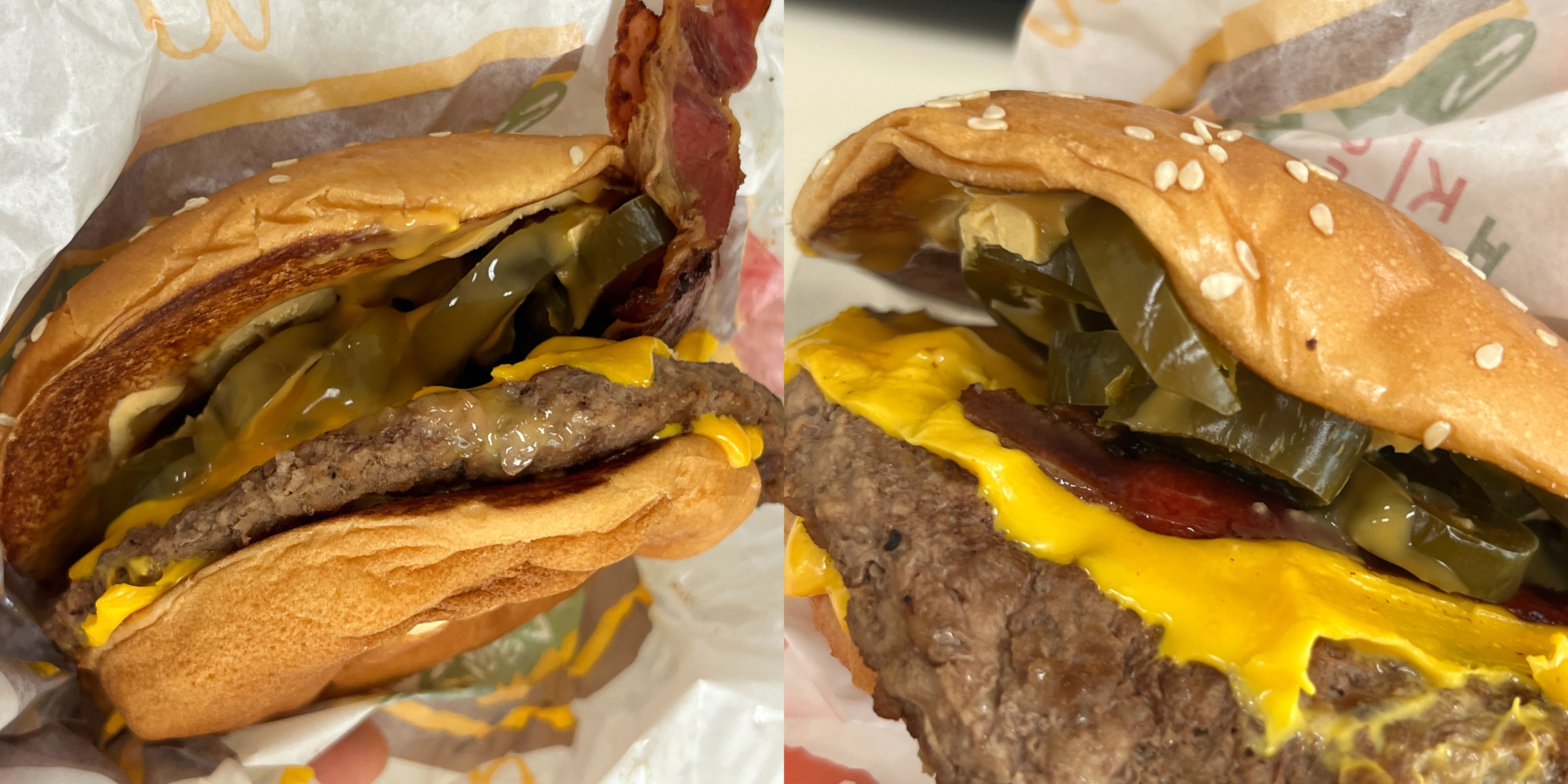 안에 이렇게 베이컨과 할라피뇨와 체다치즈가 추가된 것을 볼 수 있다. 은근히 매콤해서 매운 알싸함을 싫어한다면 불호일 듯. 다만, 체다치즈가 마냥 알싸하지 않게 잡아주는 역할을 한다.