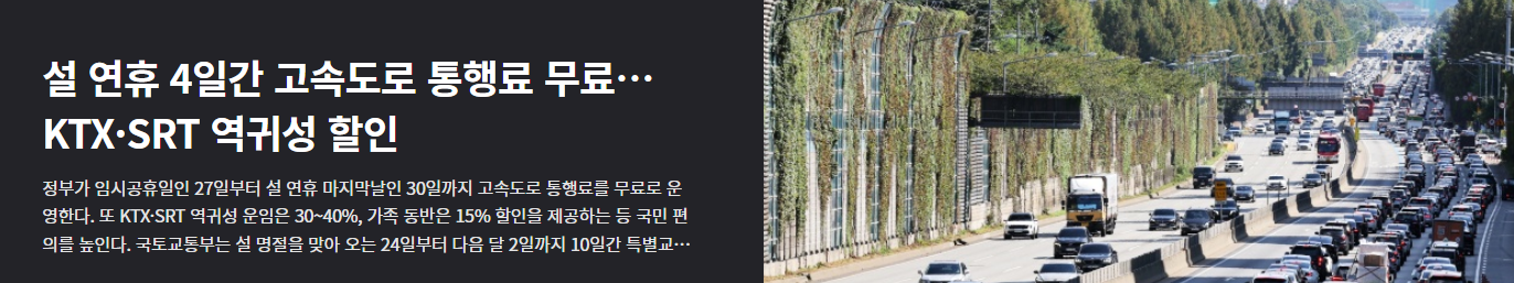 서울대전, 서울부산 이동시간은 명절 평균 이동 시간보다 30분~1시간 단축될 것으로 예측. 설날 당일인 29일에 601만 명이 이동할 것으로 관측