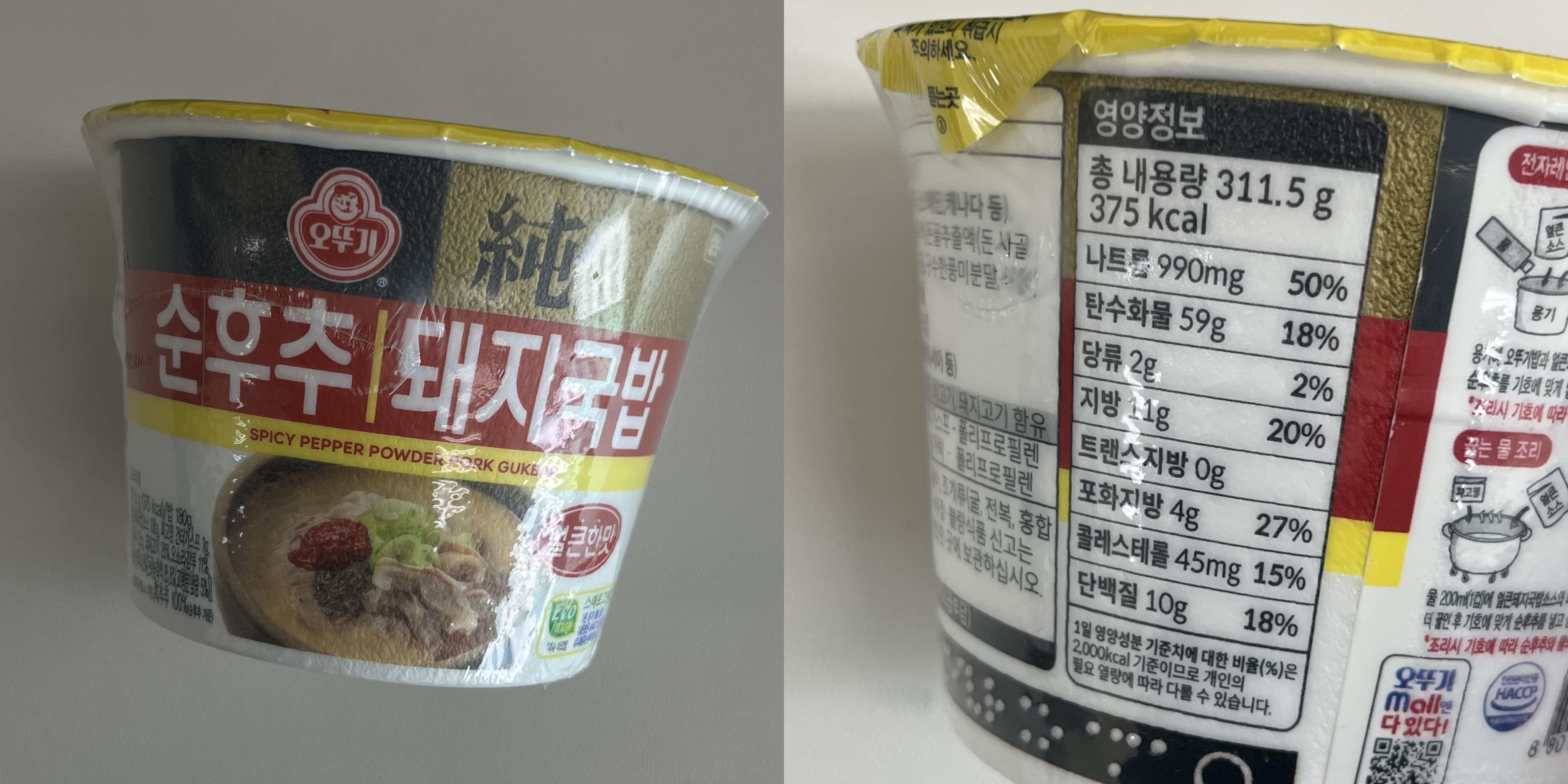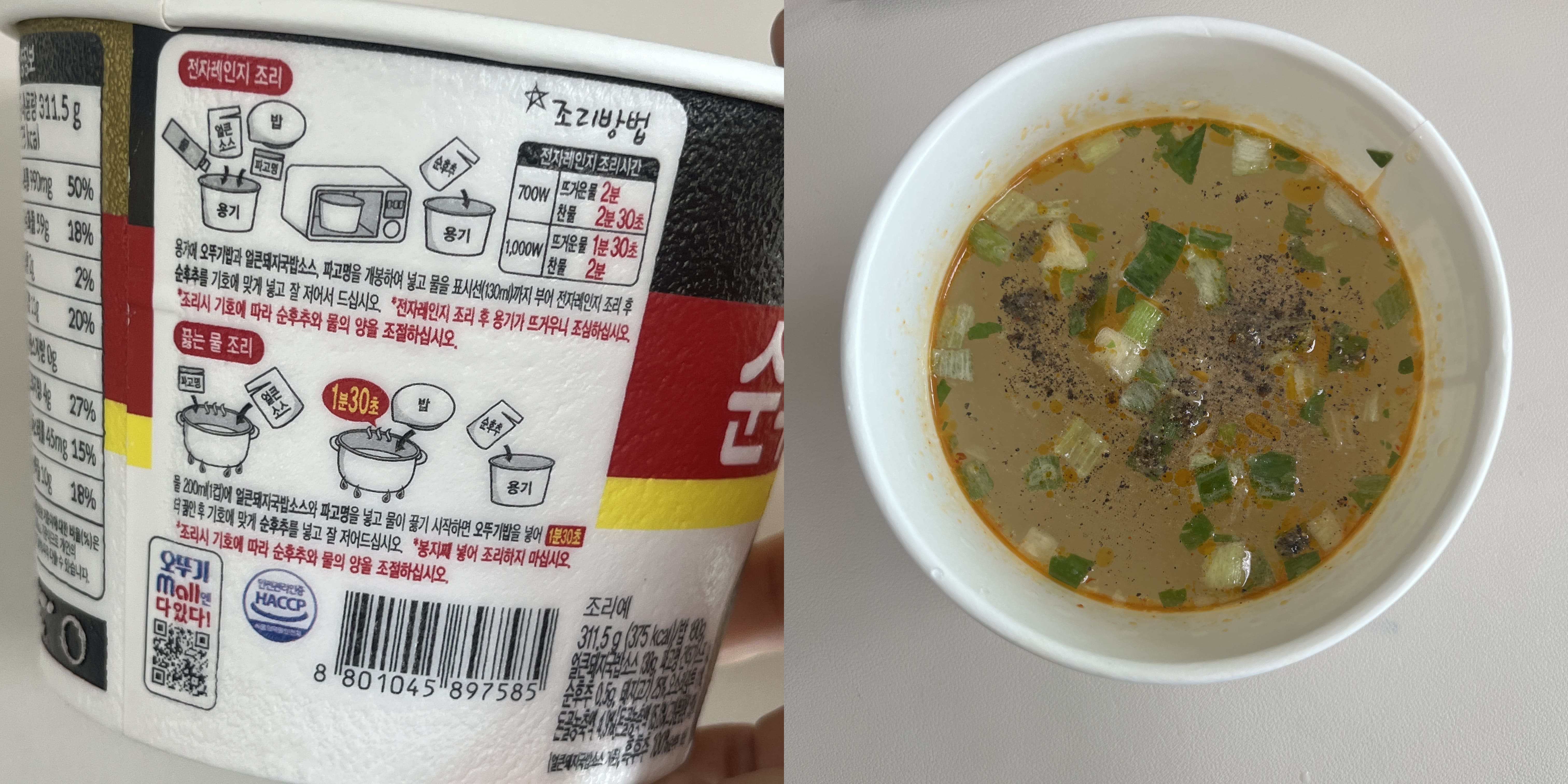 편의점에서 간단히 점심을 사 먹으려고 들렸다가 마땅한 게 없어서 사게 됐다. 도시락, 미역국, 컵밥 등은 파는 걸 봤는데 이건 신기하고 순후추와 저 폰트가 괜스레 믿음직스러워서 샀다.