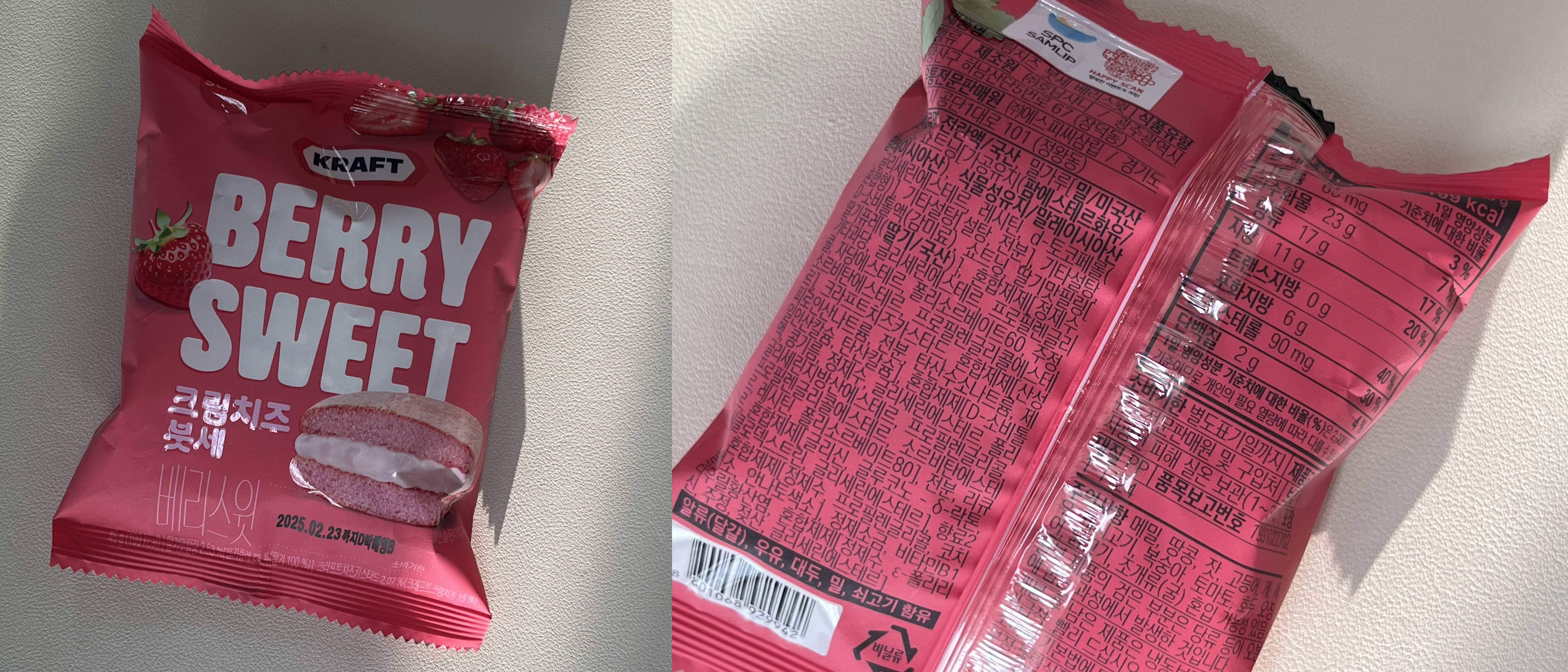 배리스윗 크림치즈 붓세는 편의점에서 샀다. 포장지가 핑크핑크해서 눈에 띄었다.