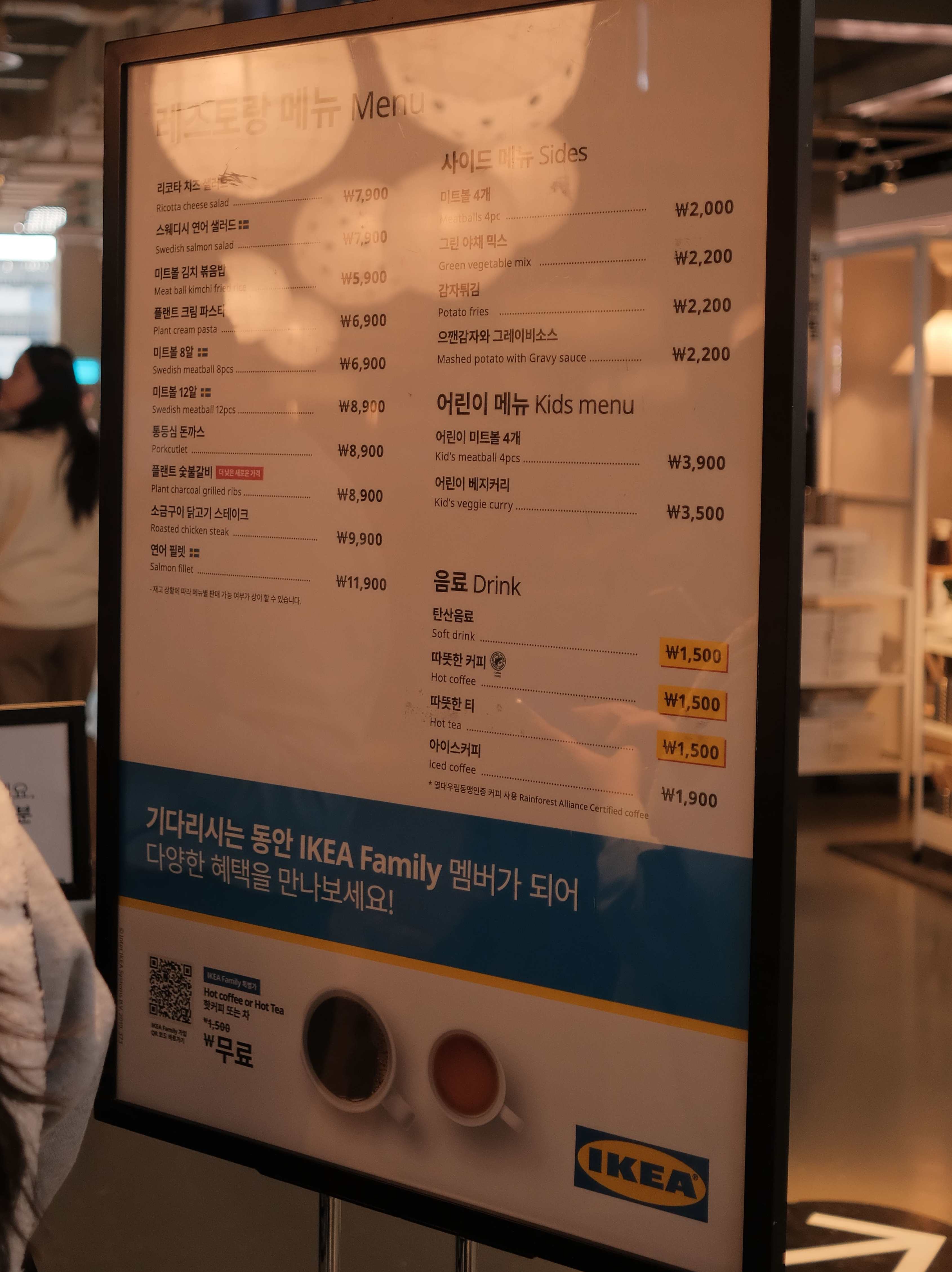 이케아 레스토랑 메뉴 및 가격