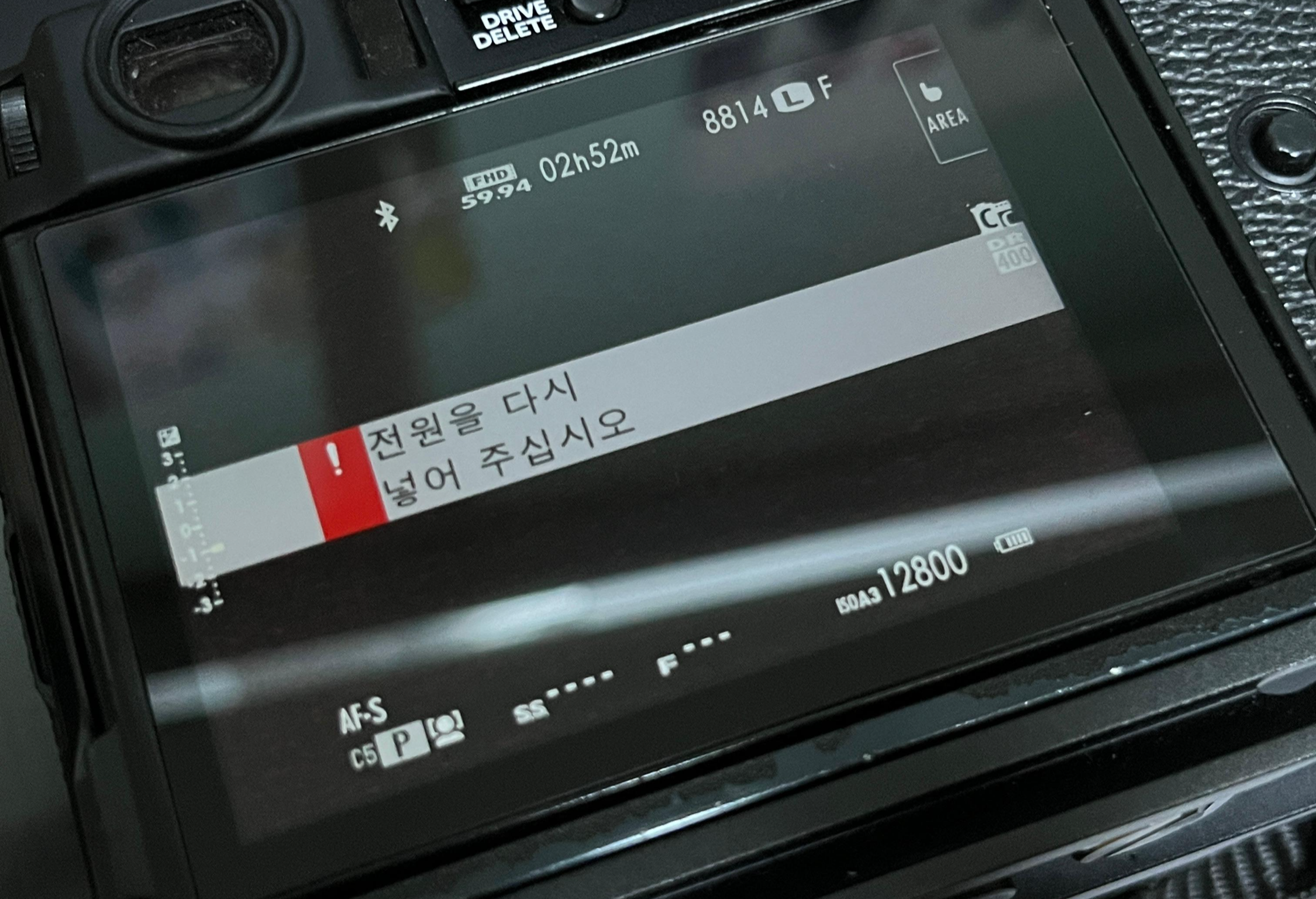 어느 날 갑자기 카메라로 사진을 찍다가 오류가 떴다. "전원을 다시 넣어주십시오." 비교적 가까운 사진을 찍는데 렌즈가 포커스를 못 맞춰서 그런가 싶어서 전원을 다시 껐다 켰는데도 계속 오류가 떴다.