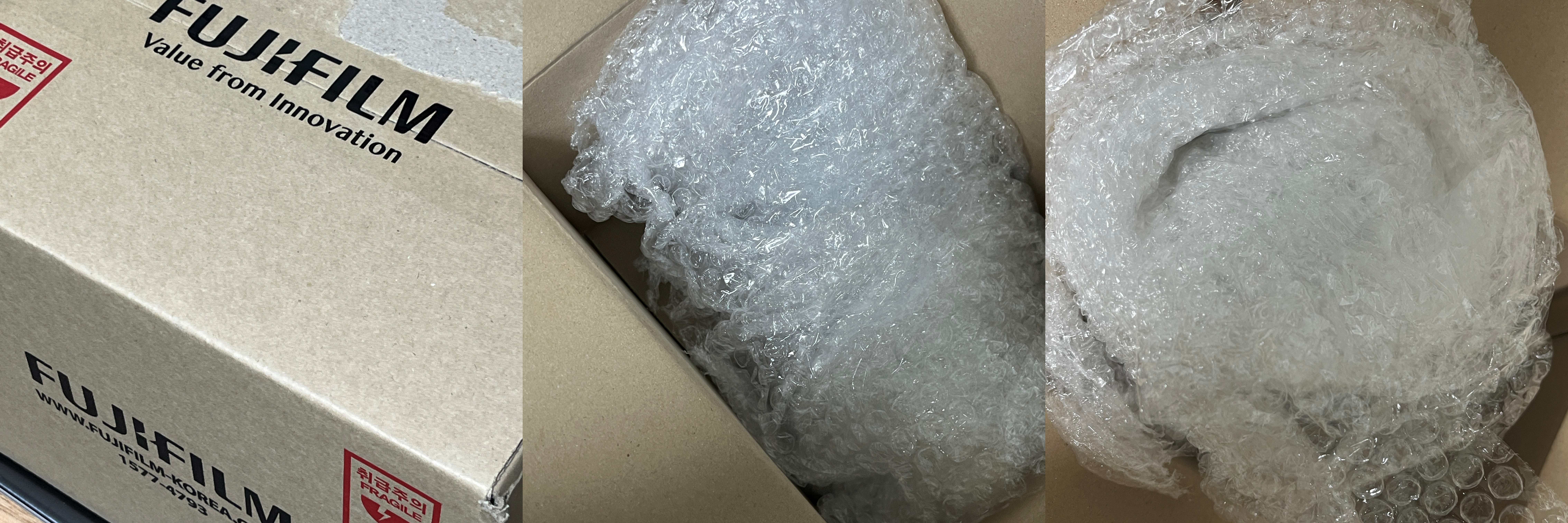 나는 택배로 접수 신청을 하였고, 포장해서 택배로 보냈다. 카메라니까 완충재를 잘 넣어서 보냈다. 그리고 발송 다음날 택배가 도착했고 택배가 도착했다고 연락이 온 당일 2~3시간도 안돼서 후지필름에서 전화가 왔다.