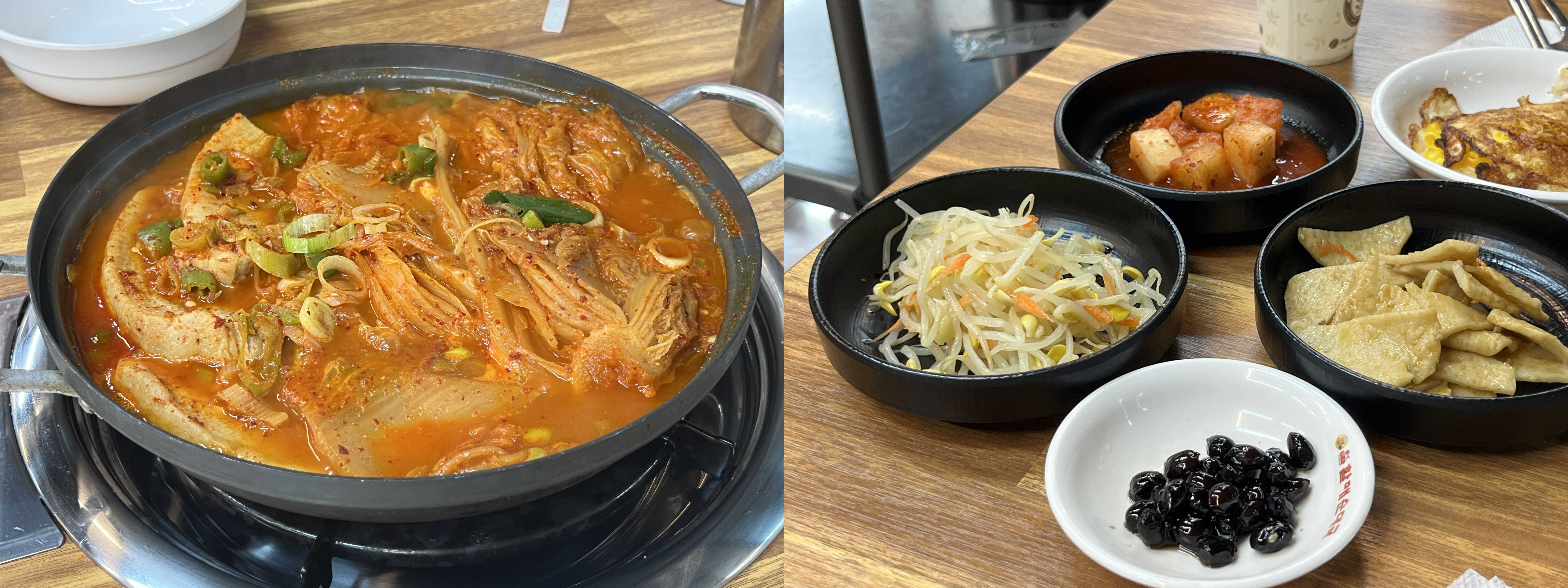 내가 잘 못 자르니까 사장님이 오셔서 잘 찢어서 먹는 법을 알려주시면서 고기랑 김치장 잘라주셨다. 별 거 아닌 서비스일 수도 있지만 사장님이 정말 친절하셨고 따듯하셨다. 김치찜은 얼큰하면서도 맛있다. 기본은 조금 매울 수도 있어서 덜 맵게 미리 요청하면 해주신다. 메뉴판에도 쓰여있지만 얼큰한 건 그대로지만 약간 슴슴하게 나오기 때문에 소금이나 새우젓 첨가해서 입맛에 맞게 간 조절해도 된다. 양도 많고 맛있고 친절해서 좋은 곳!