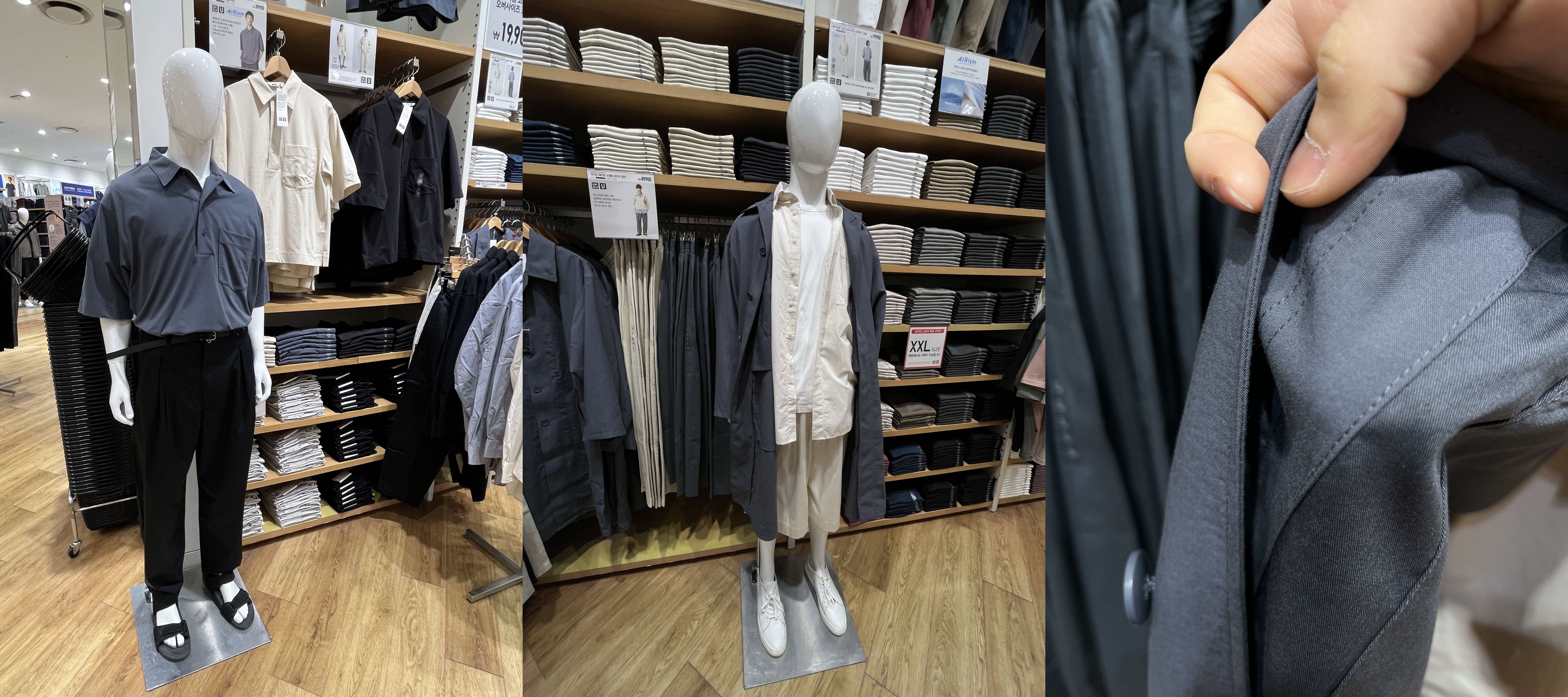 이것 역시 일부 매장 제품이다. 사람들이 기대를 많이 했는데 현재 회색은 온라인에선 전 사이즈가 품절이다. 블랙과 네츄럴은 남았는데 블랙도 M과 XXL 품절이다. 시어서커 원단이라 시원하고 촉감이 좋다.