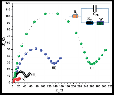 실수부를 X축, 허수부를 Y축으로 그리게 되면 Nyquist plot이 된다. 일반적인 모양은 하단과 같다. 반원을 그린 후에 45도 직선으로 쭉 뻗어나간다. 반원에 처음 찍히는 X축이 'Rs'라고 한다. Rs는 보통 전해질과 전극 사이에 저항이다.