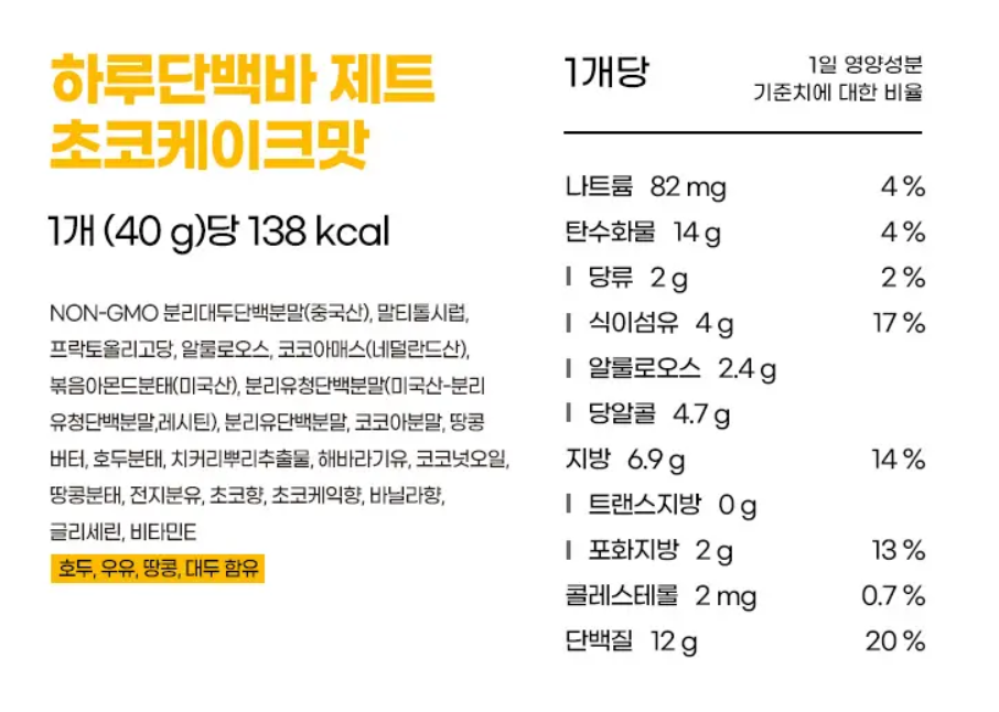 하루단백바 제트 초코케이크맛 40g