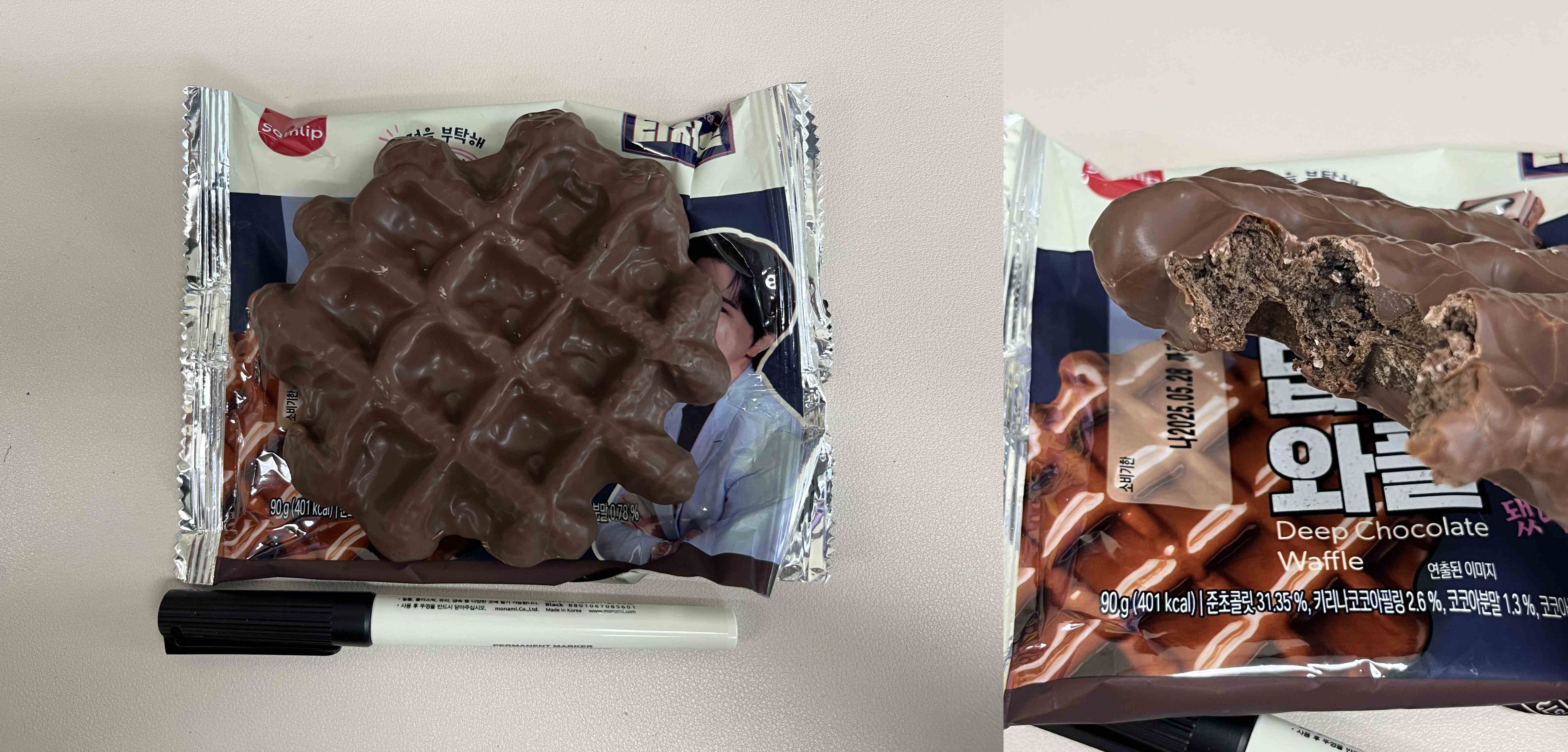 초코와플이라 그런지 베리굿팡보다 200원 더 비싸고 당류나 포화지방도 많이 높아서 진짜 당 떨어질 때 먹어야 할 것 같다. 개인적으로 이게 더 초코라 그런지 먹음직스럽다.