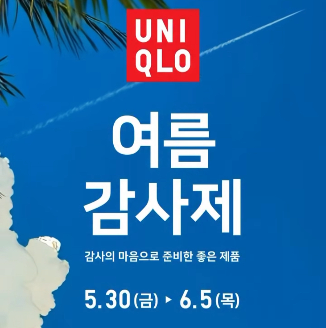 유니클로는 1년에 두 번 대형 할인 행사인 감사제를 진행하는데, 이번 25SS 감사제 날짜가 확정되었다. ✅기간 : 5월 30일(금) ~ 6월 5일(목)