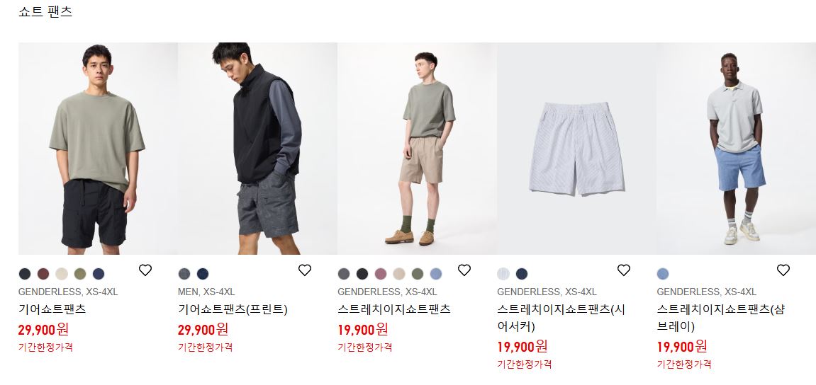 ✅유니클로 스트레치 이지 쇼트팬츠 29,900 > 19,900