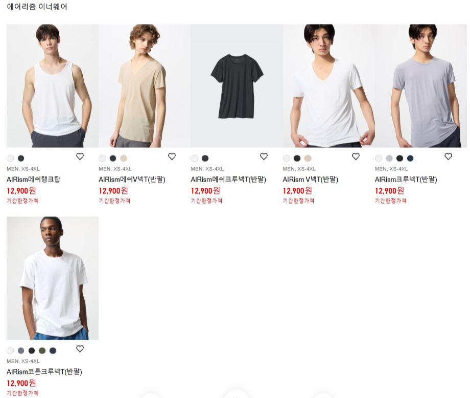 ✅유니클로 에어리즘 이너웨어 14,900 > 12,900