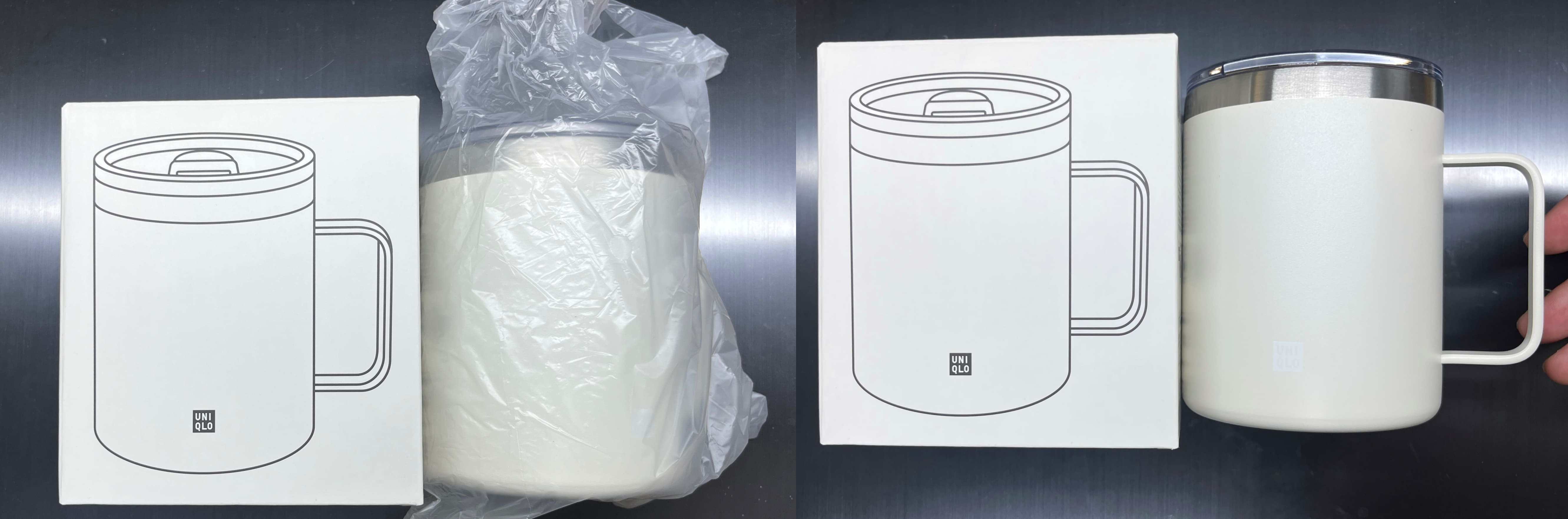 뚜껑을 열면 안은 그냥 스테인이스. 밑에는 메이드인 차이나가 있고 옆면엔 희미한 유니클로 마크다. 이왕 살 것도 있었는데 머그컵도 받아서 좋다. 유니클로 감사제 굿즈는 처음 받아본 것 같은데 유용하게 잘 써보겠다.