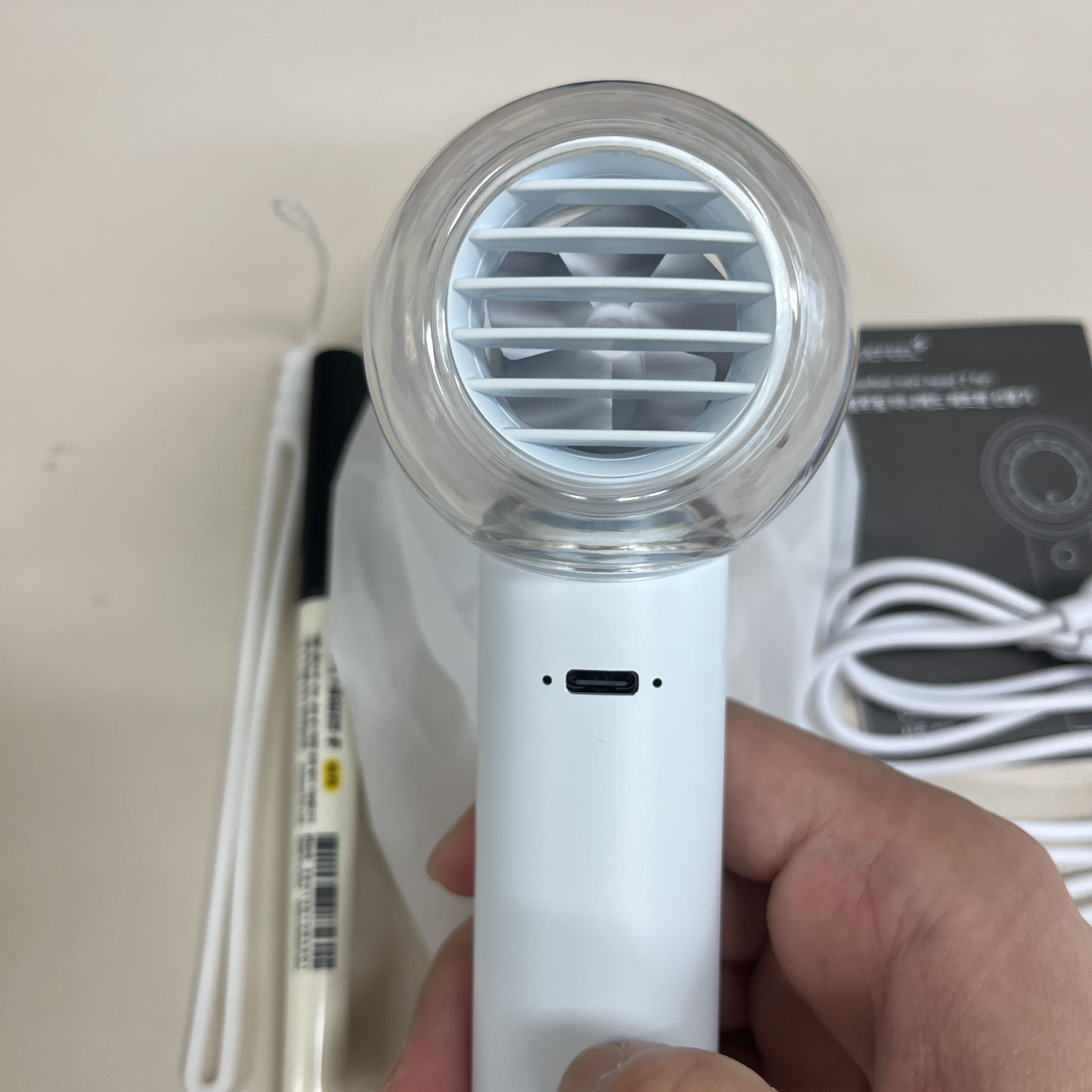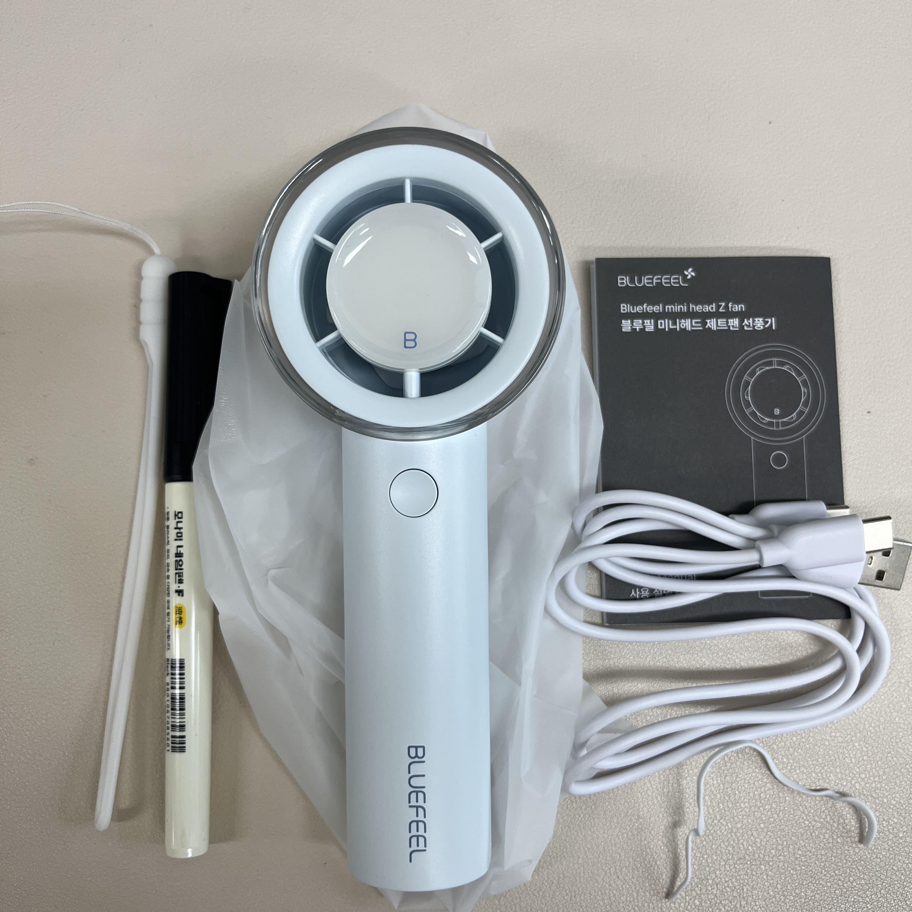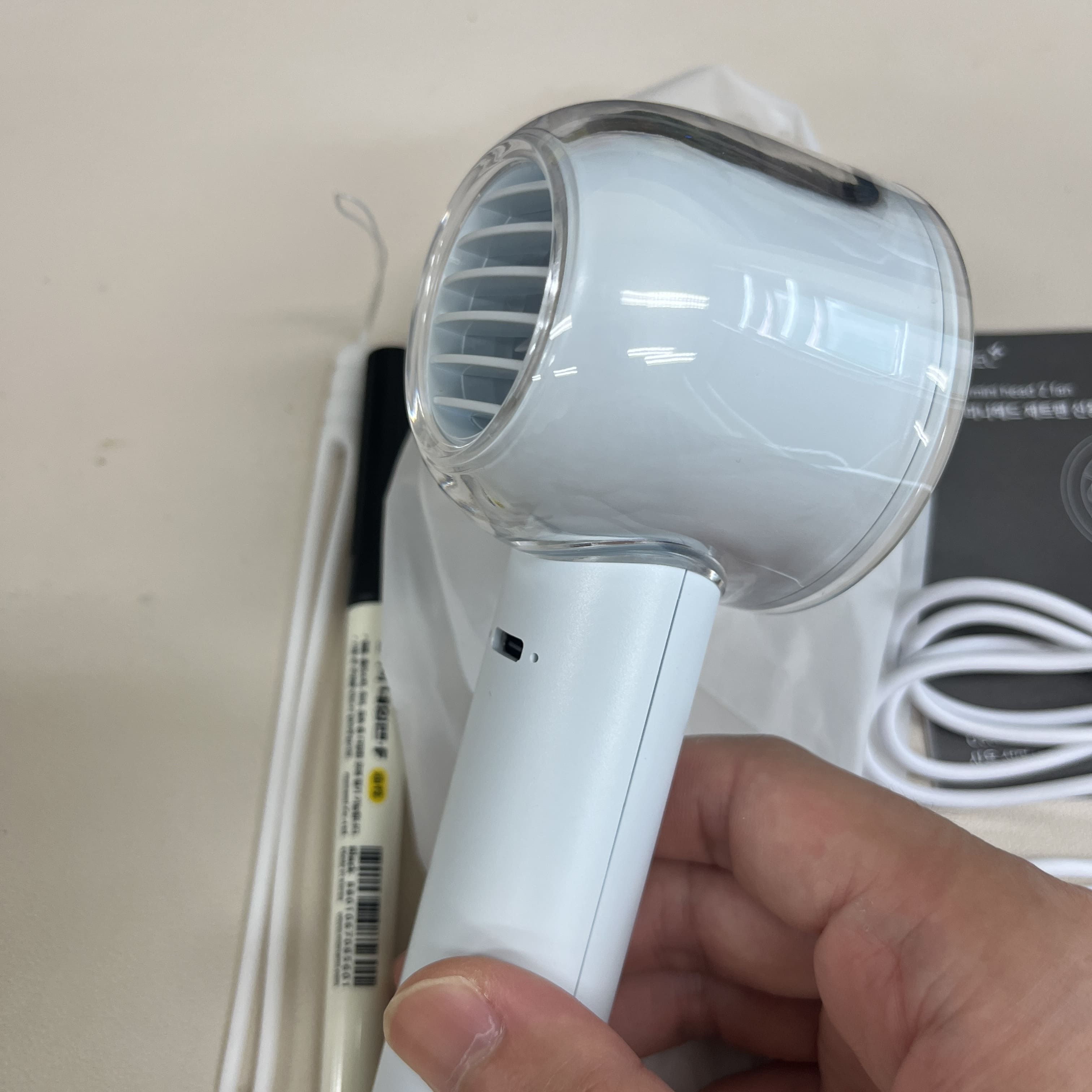 여름이 다가와서 휴대용 선풍기를 하나 구매했다. 이미 n년 전에 산 손풍기가 있고 정상적으로 작동하고 있지만 5핀 케이블에 그냥 새 거 사고 싶어서 샀다. 보니까 이때 구매했던 것도 블루필이었던 듯