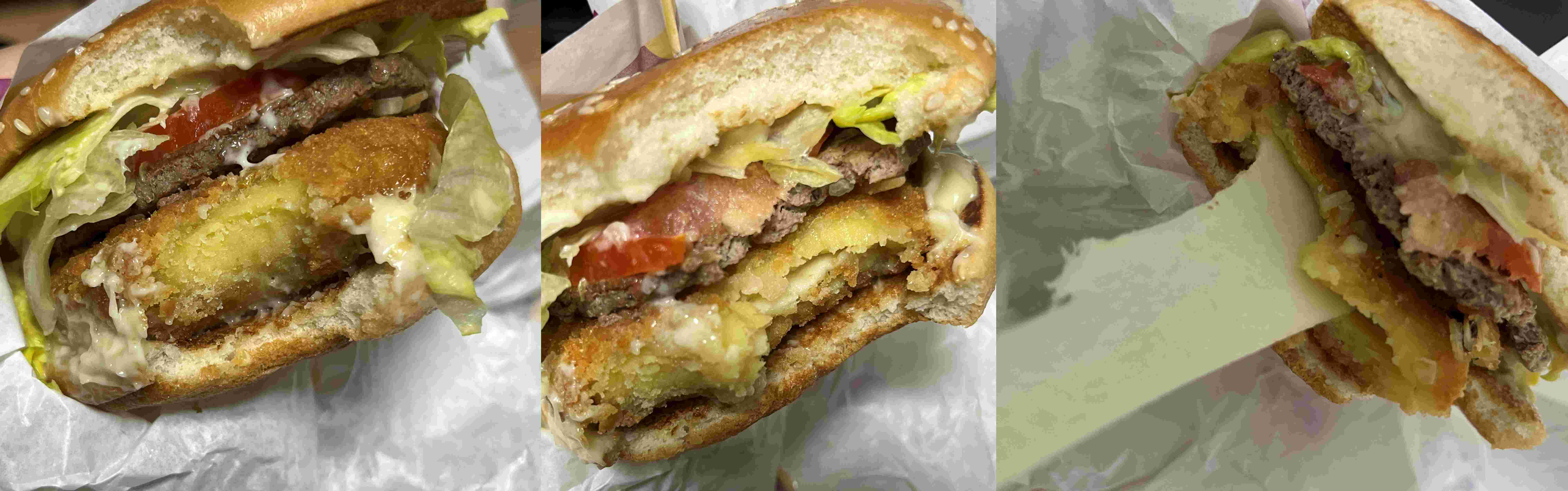 고구마 크로켓 안에는 쭈우욱 늘어나는 모짜렐라 치즈가 있다. 잘못 먹으면 치즈만 다 빠져서 고구마만 남은 크로켓을 먹을 수 있음. 맥모닝으로 먹었던 크로켓과 동일하기에 맛 차이는 없다. 실패가 없는 조합이기도 하다. 다만, 할라피뇨 마요소스 말고 다른 거 넣으면 안 되나 싶기도 함.