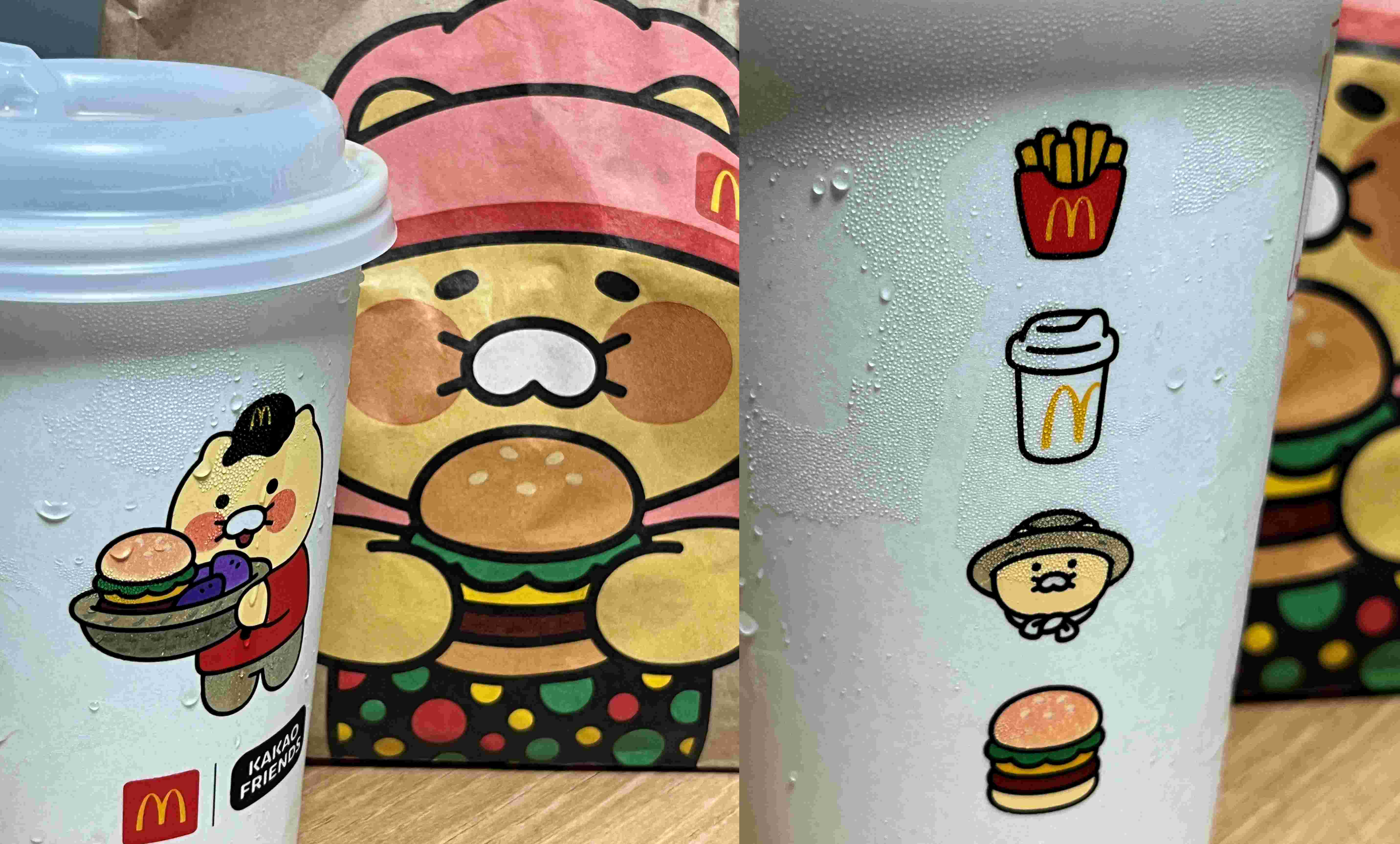 그리고 이번에 익산 고구마 모짜렐라 버거는 고구마를 좋아하는 춘식이와 패키지를 협업해 춘식이 포장지에 담아준다. 버거 포장지나 감자튀김 등은 그대로고 다 담아주는 종이랑 콜라 용기만 춘식이가 그려져있고 다른 굿즈가 있는 건 아니다.