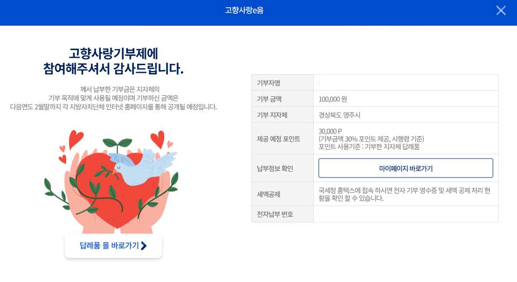📌고향사랑e음 고향사랑기부제 *경북 영주시