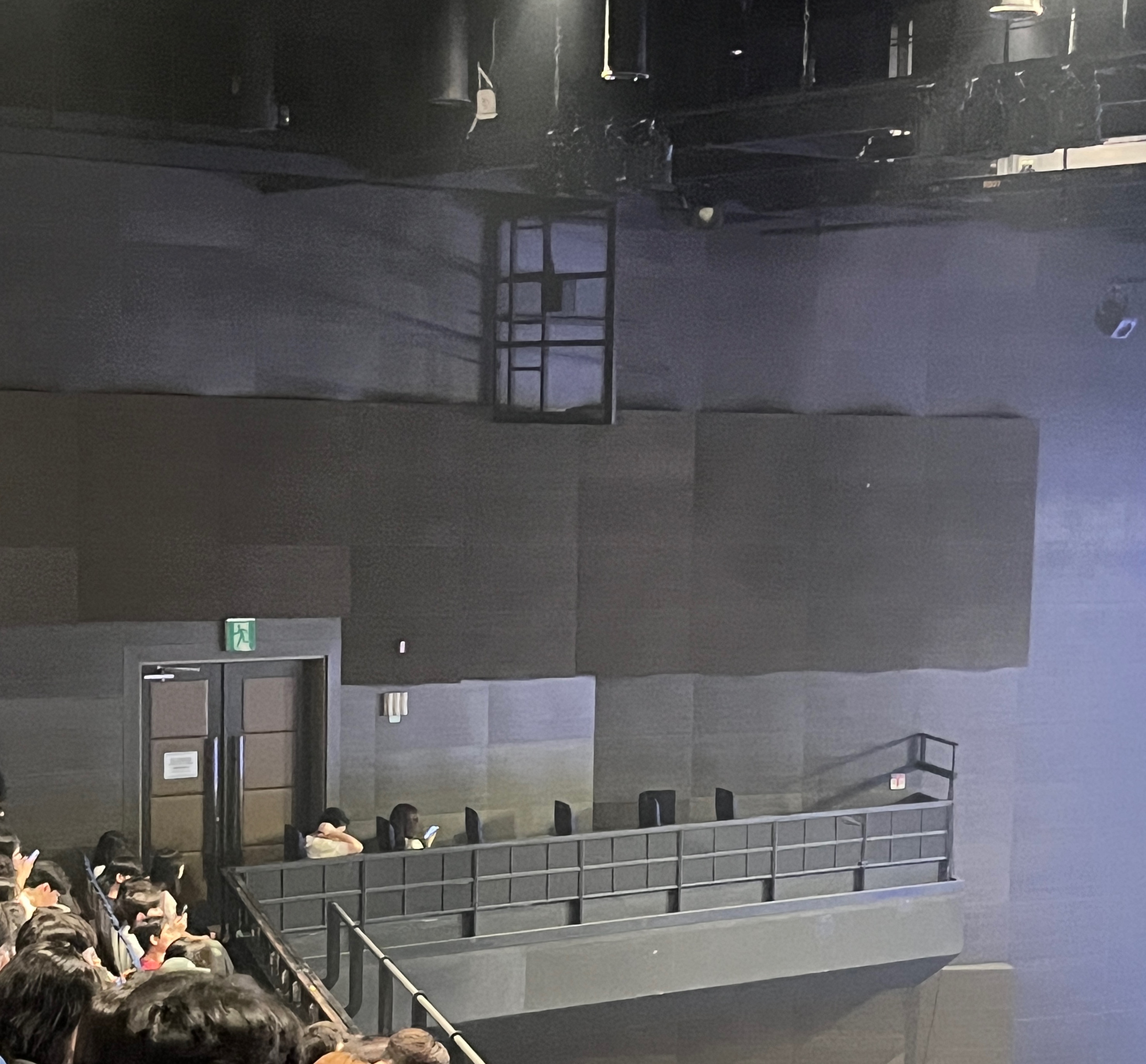 아래 사진은 2층에 사이드 구역인데 자리가 신기해서 찍어봤음. 기차처럼 한 줄로 앉는다. 2층 12열은 앉은자리에 따라 순간 조명 눈뽕이 올 수는 있다. 그리고 출입문으로 들어올 때랑 나갈 때 맨 뒷자리라 편했었다.