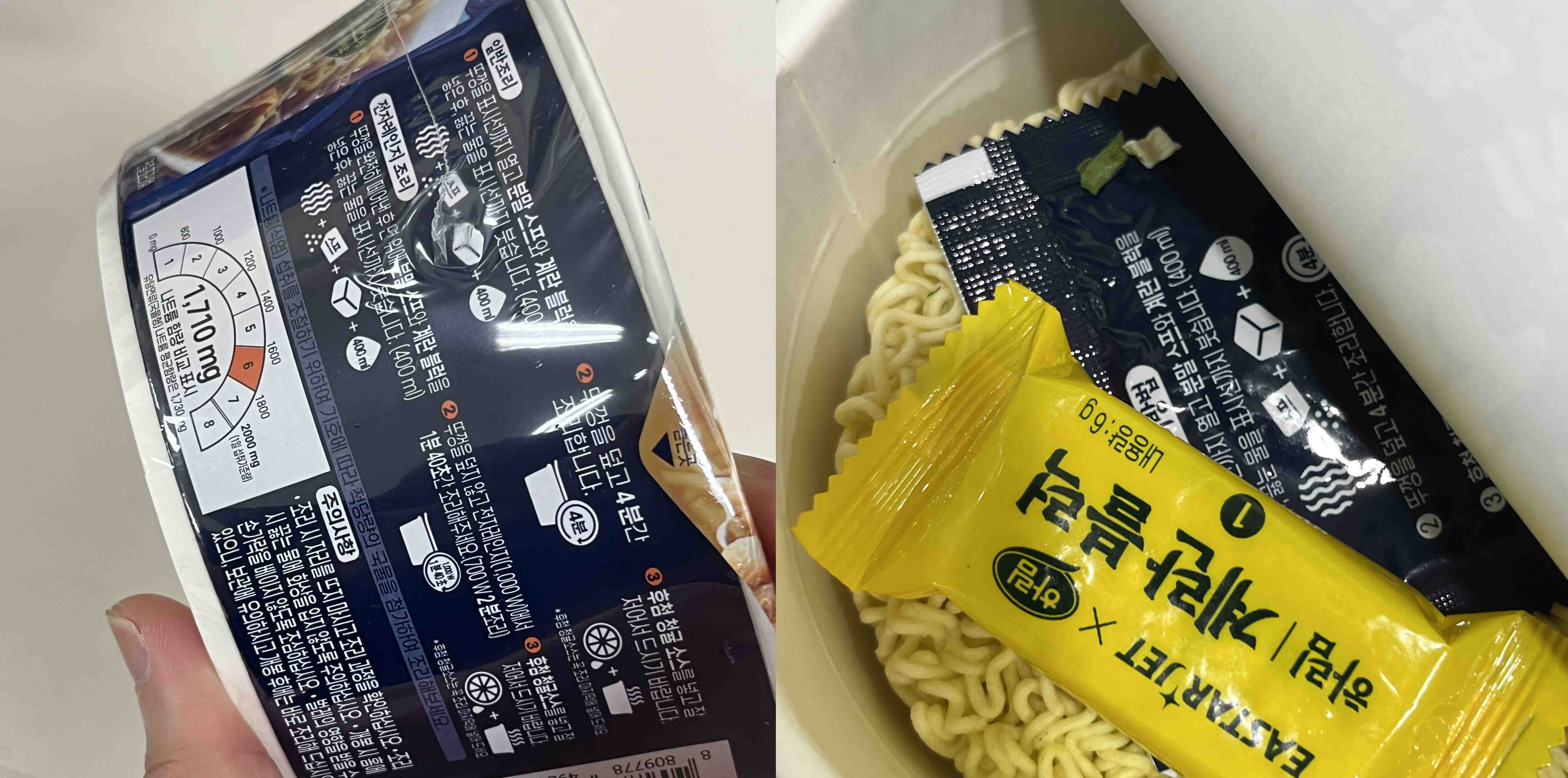 조리법은 스프와 계란 블럭을 넣은 뒤에 끓는 물을 표시선까지 붓고 4분간 기다린 뒤에 청귤 소스를 후첨으로 넣으면 끝.
