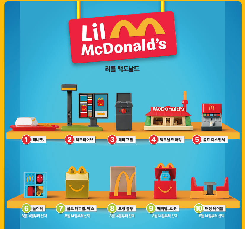 귀여운 해피밀이 시작됐다. 다른 해피밀보다 인기가 생각보다 많은 게 맥도날드 시리즈 해피밀. 총 10가지로 1차 라인업은 25년 7월 31일부터, 2차 라인업은 8월 14일부터 판매가 시작된다. 개인적으로 2차의 골드 해피밀이 이상하게 좀 땡긴다.