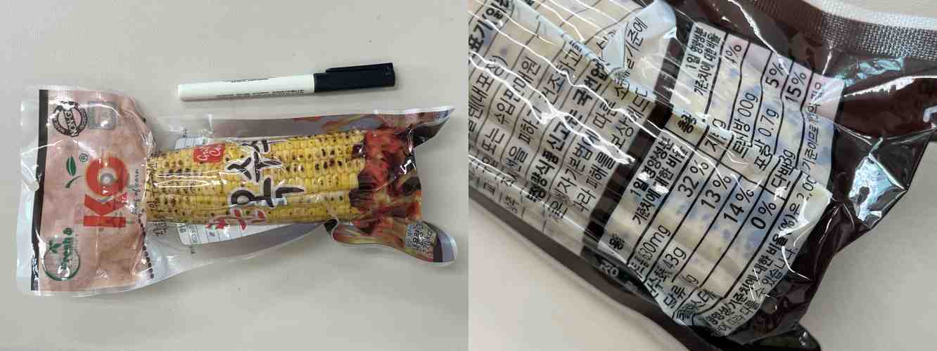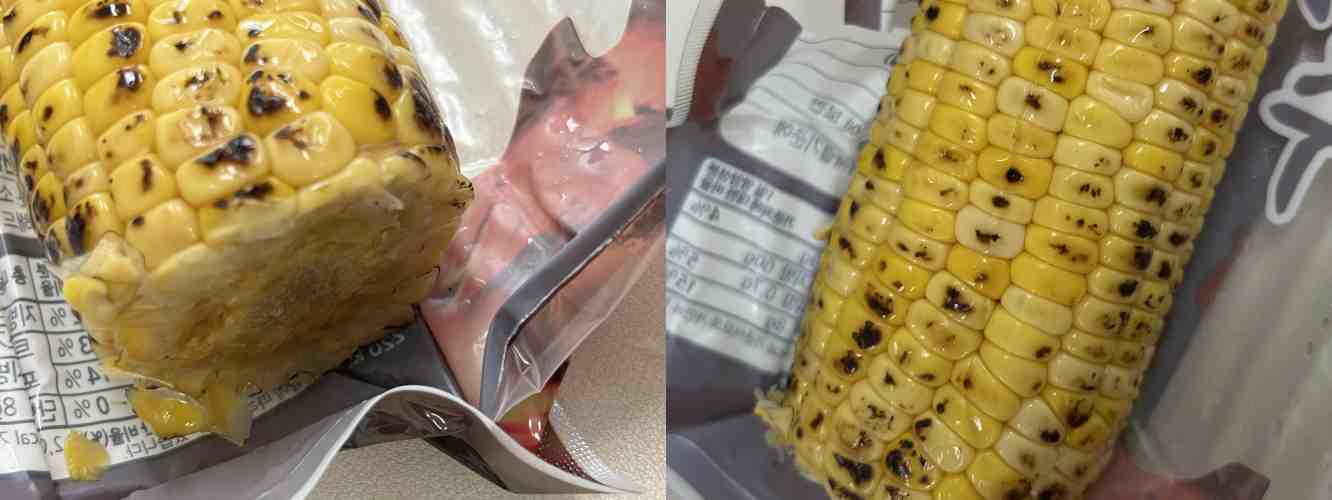 편의점에서 안 사 먹을 것 같은 거 또 사 먹었다. 이번엔 편의점 군옥수수. 편의점에서 사과나 고구마 파는 것도 신기했는데 아예 진공포장된 옥수수 파는 게 굉장히 신기했다. 유전자 변형을 하지 않은 옥수수고 원산지는 태국이다. 특등급만 골랐는지 모난 곳이 없고 모양이 예쁘고 진짜 다 노랗다. 살짝 토치로 구운 느낌이다.