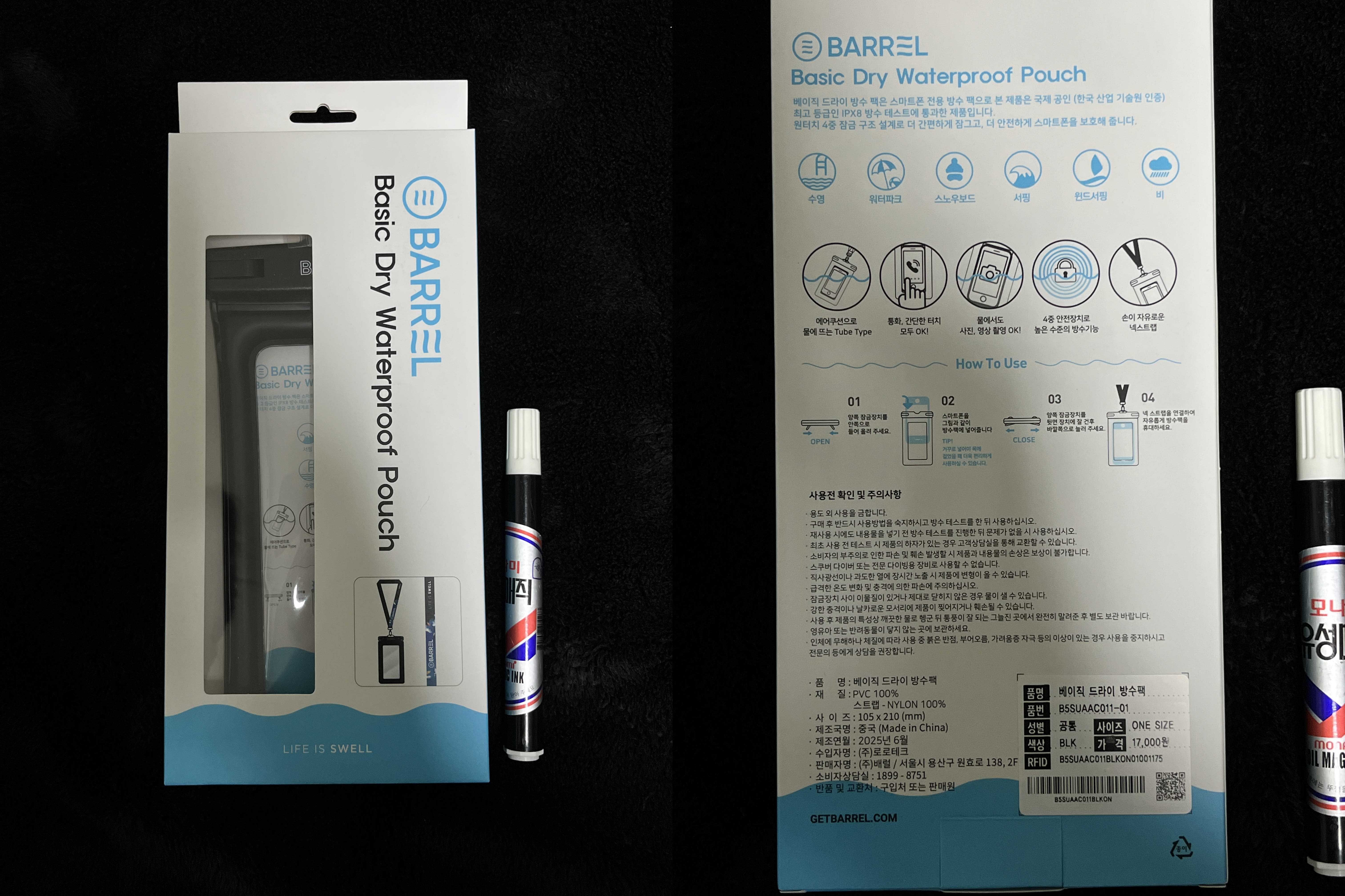 물놀이를 위한 방수팩을 찾다가 발견한 배럴 방수팩. 이것보다 더 가격도 싸고 그만큼 좋은 것들도 많지만 배럴 매장을 지나가다가 보고 그냥 사버렸다. 이 제품 말고도 그냥 다른 드라이 방수팩도 있었는데 가격은 6,000원이 더 비쌌다. 차이점은 디자인 차이 밖에 없는 듯