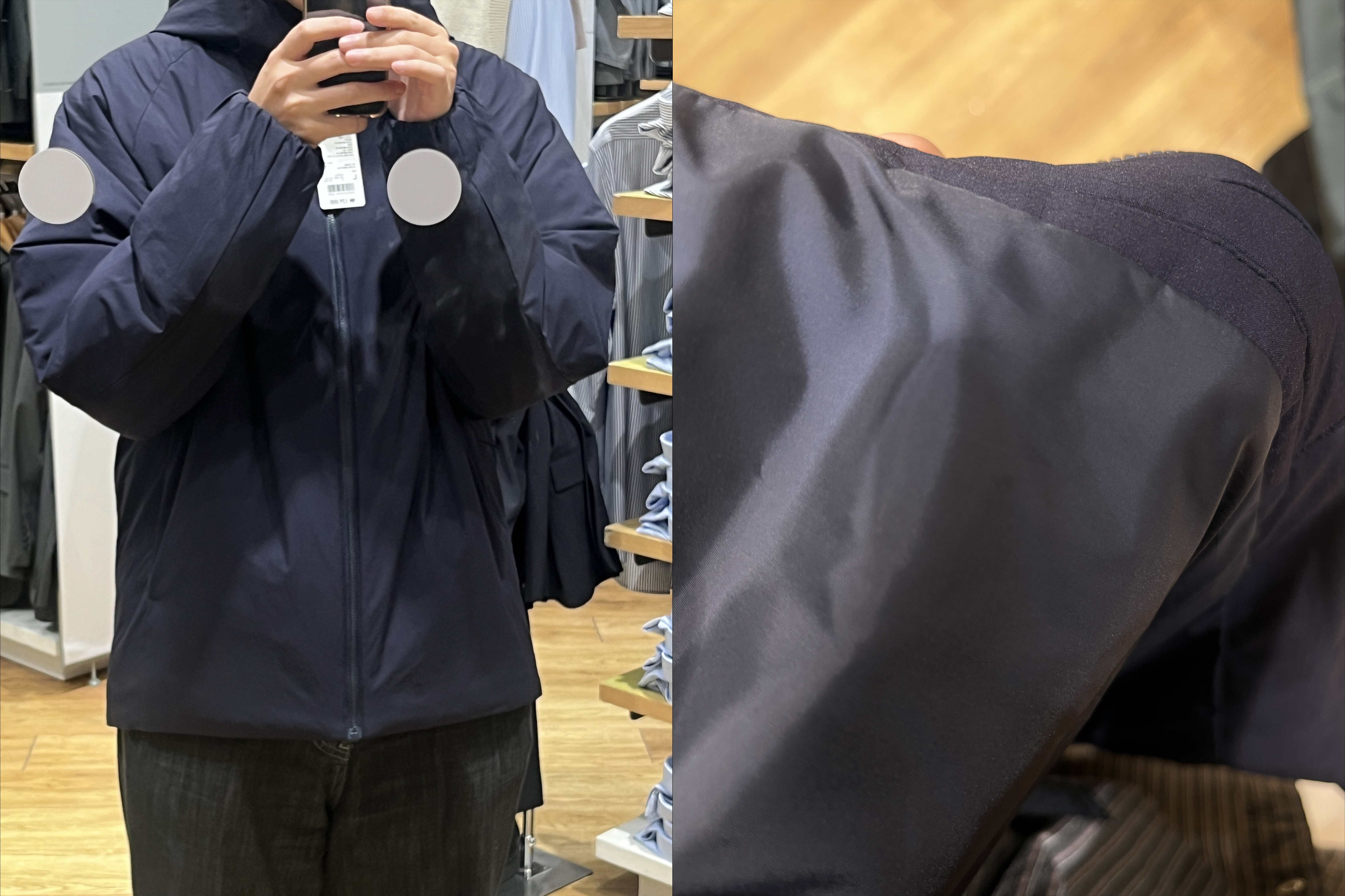 네이비를 입어봤다. 처음엔 M 사이즈를 입어봤는데 너무 타이트한 느낌이 있었다. 그렇다고 사이즈업을 하니 기장이 애매했다. 그리고 두께감이 진짜 얇았다. 활동을 하면 따듯한지 어떤지 알 수 있을 것 같기는 한데 아직 그걸 느끼기엔 너무 날씨가 덥다. 애매한 추위에 입기 좋은 옷 같은데 그렇게 구매욕구가 올라오진 않는다.