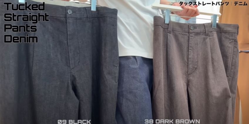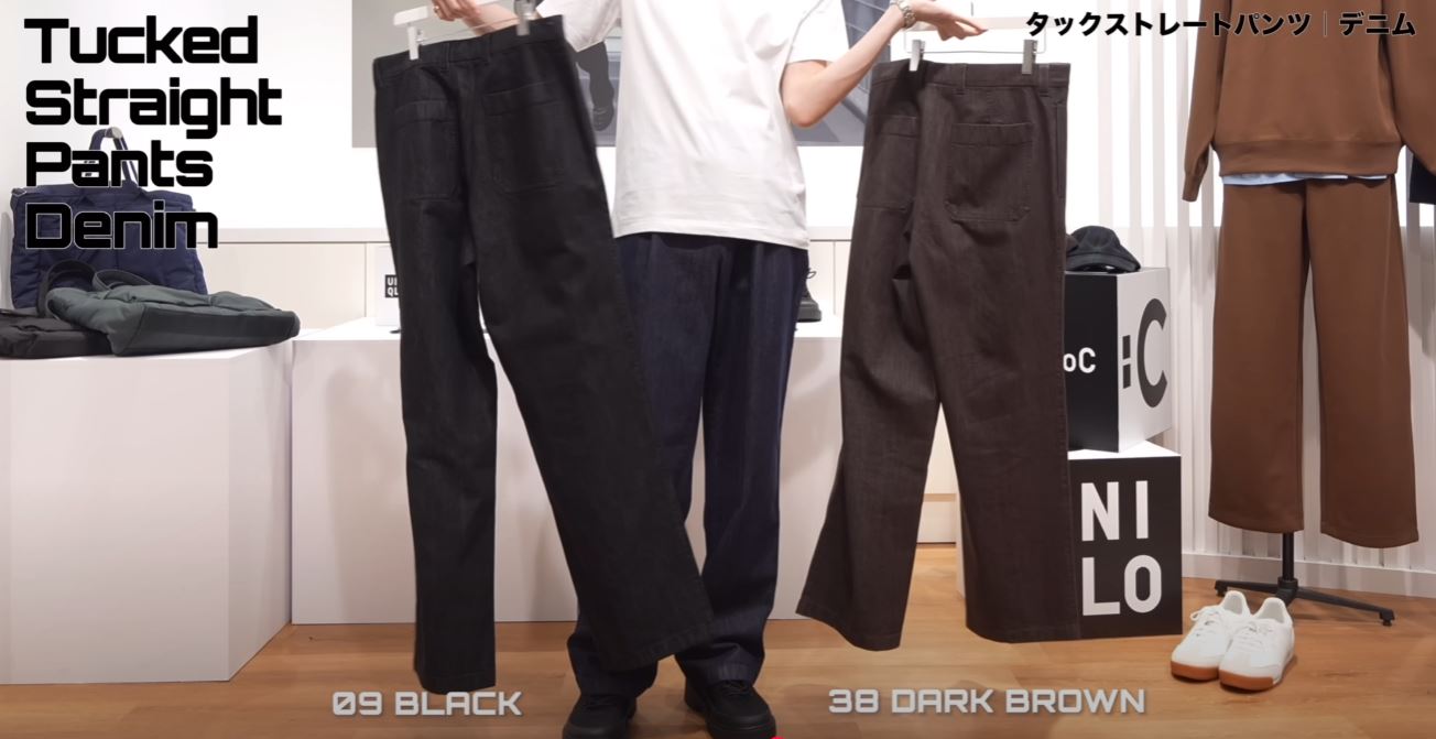 가장 큰 관심을 받고 실제로도 많이 팔리고 있는 제품이 턱스트레이트 데님 팬츠. 그중에서도 다크브라운이 인기가 많은데 우선 이런 색상의 바지는 내는 곳이 많지 않으며 거기에 이 가격으로 파는 곳은 더더욱 없다. 유니클로라 가능