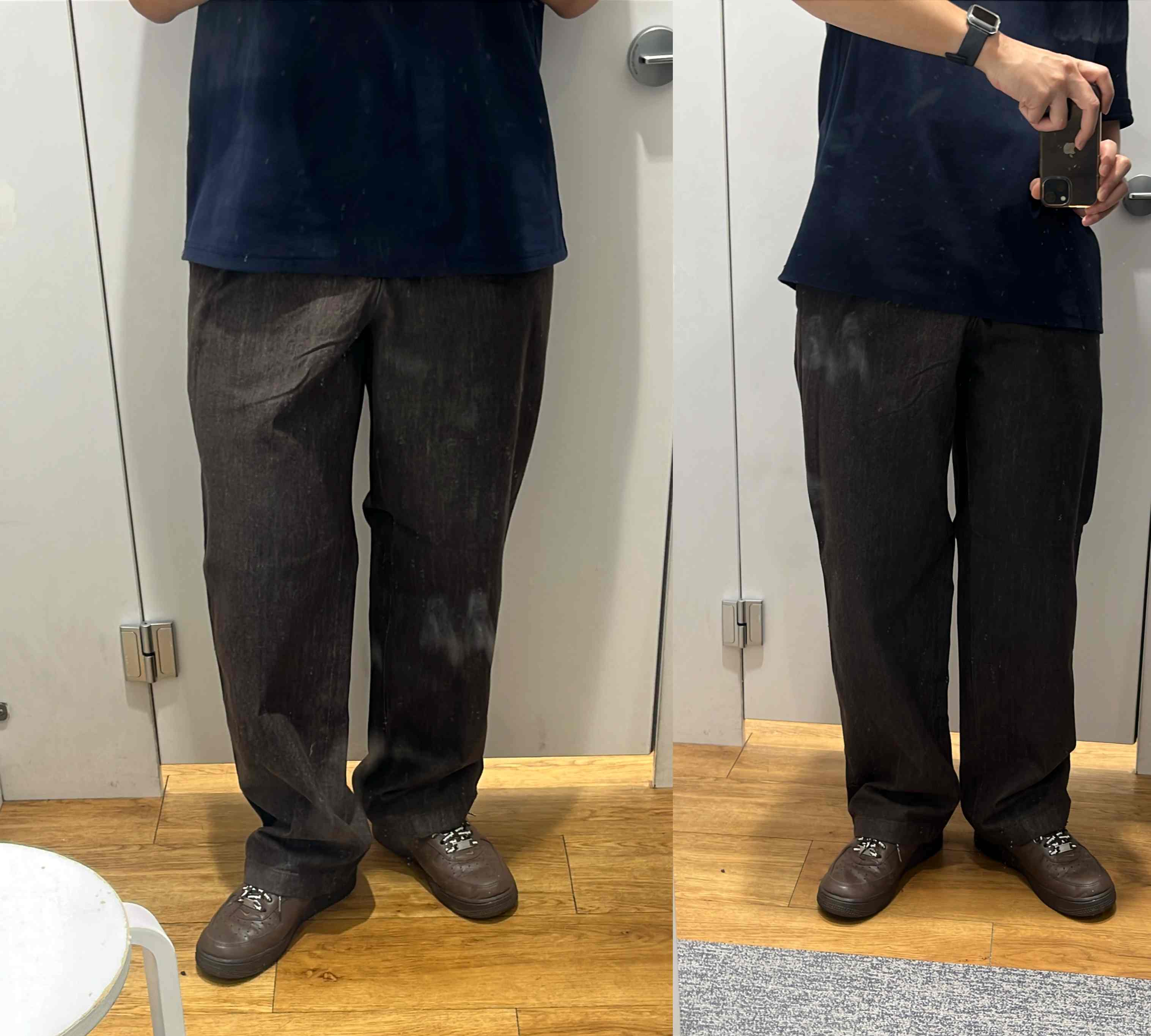 나는 유니클로 와이드핏 치노팬츠는 76을 입어서 유니클로 C 턱스트레이트팬츠(데님)은 블랙은 76, 다크브라운은 79를 입어봤다.