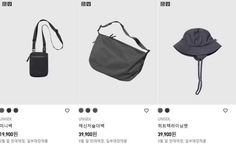 바지도 딱히 눈에 들어오지는 않으며 가방과 모자는 유니섹스로 나왔다.