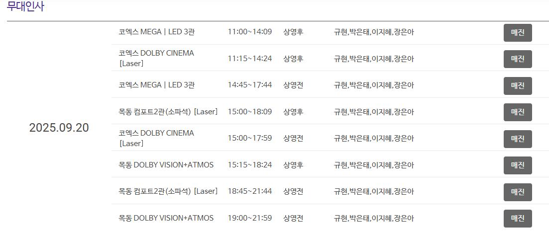 25년 9월 20일에 무대인사가 예정됐고, 꽤나 많은 상영관에서 오리지널티켓을 특전으로 제공 중이다.
