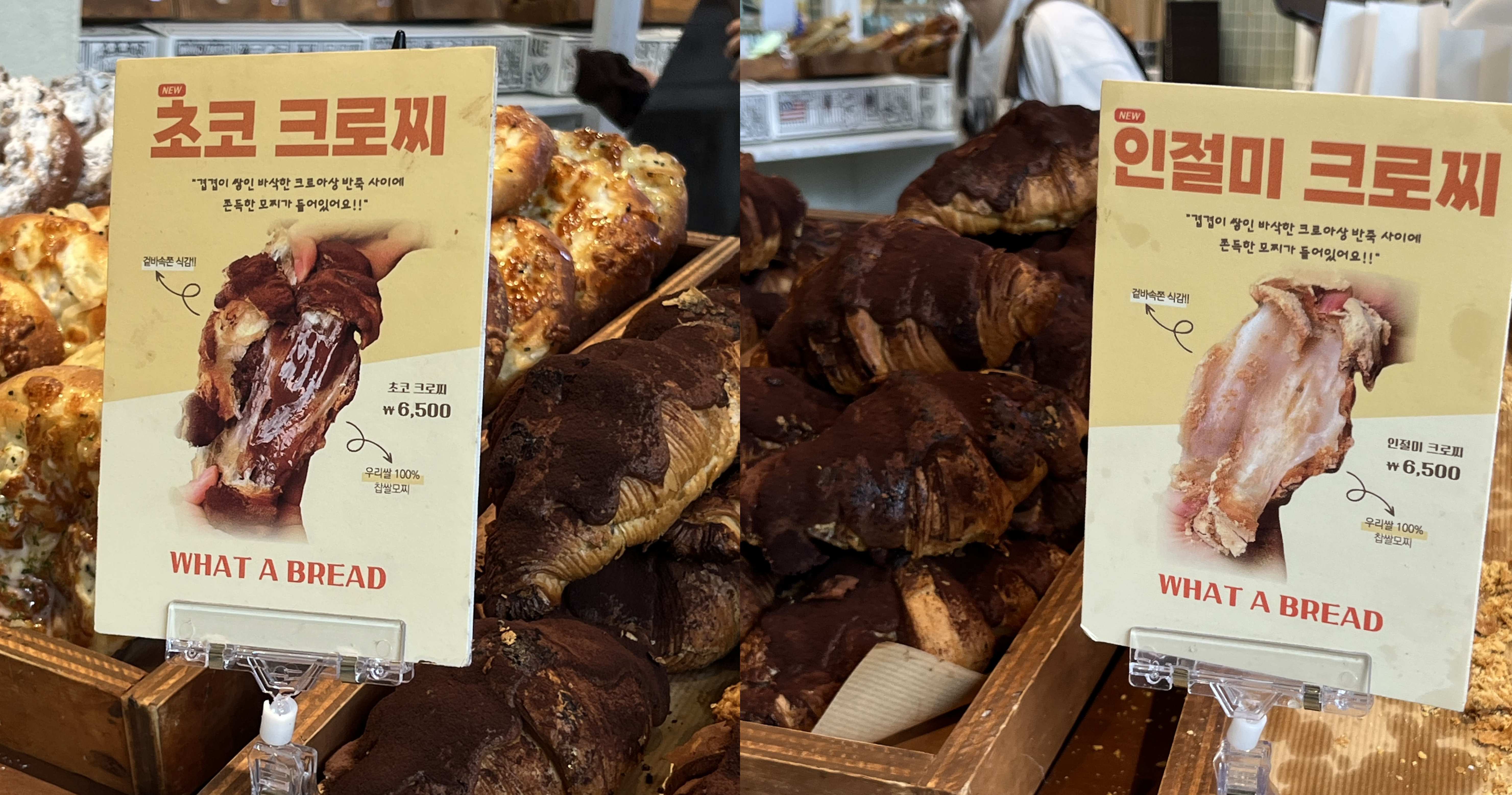왓어브레드는 신용산역에 위치한 곳이다. 치아바타, 감자빵, 고르곤졸라 바게트, 브리오슈 등을 파는데 가장 대표적인 메뉴는 크로와상과 모찌를 합친 크로찌다. 이외에도 MBTI 빵이 있는데 그냥 휘낭시에 모양을 E, I, S, N, F, J, P로 나눈 것뿐이다.