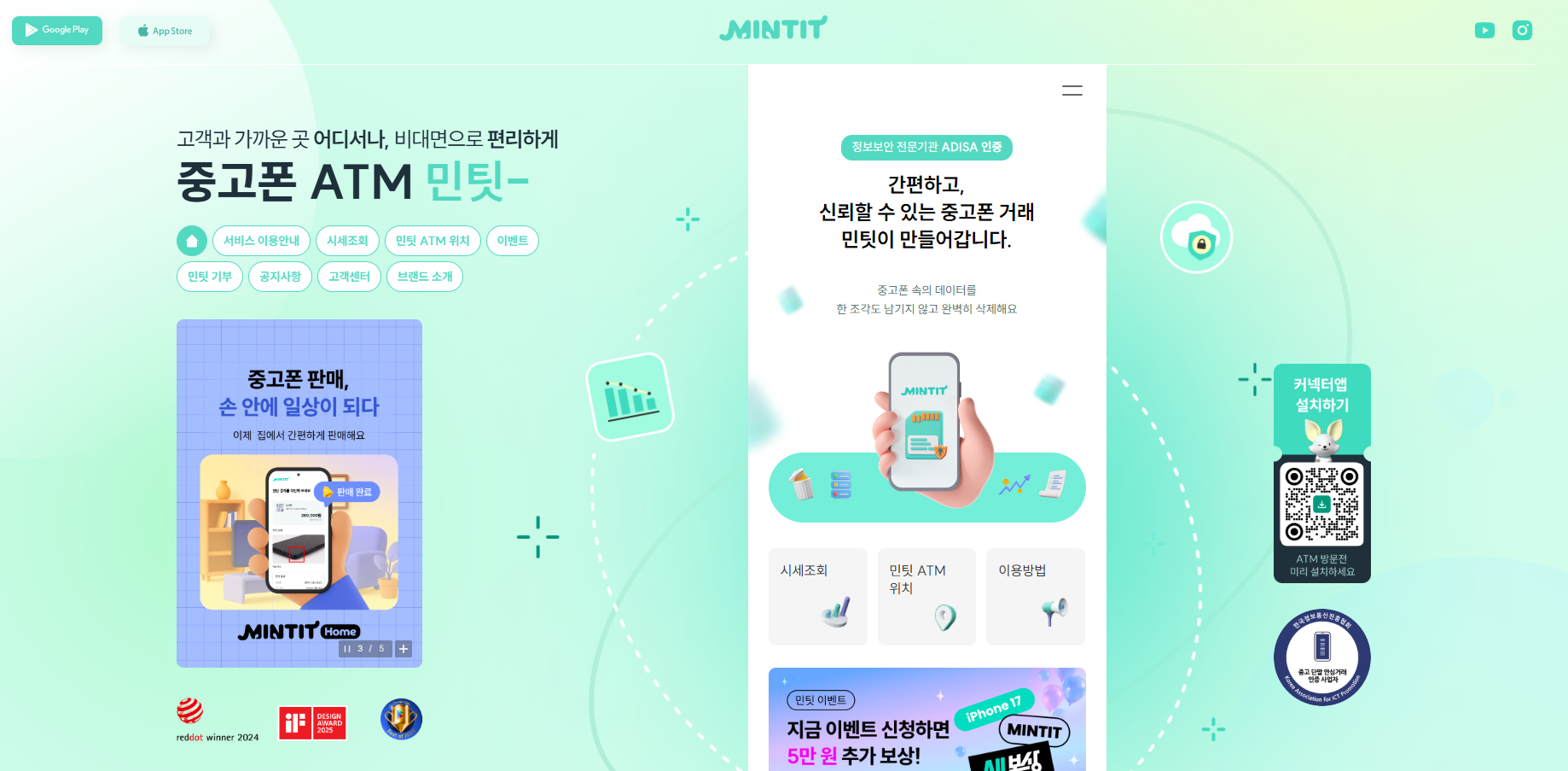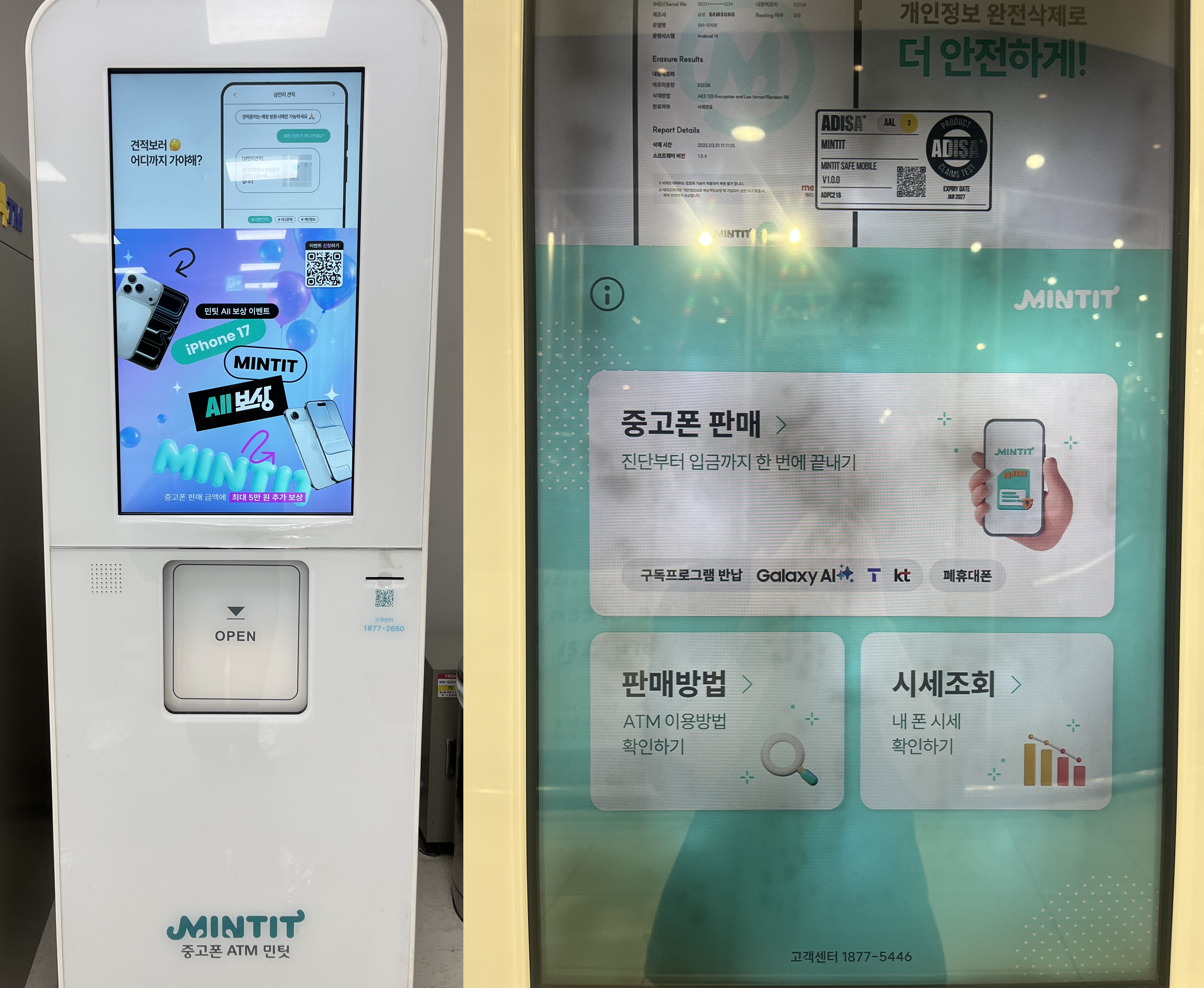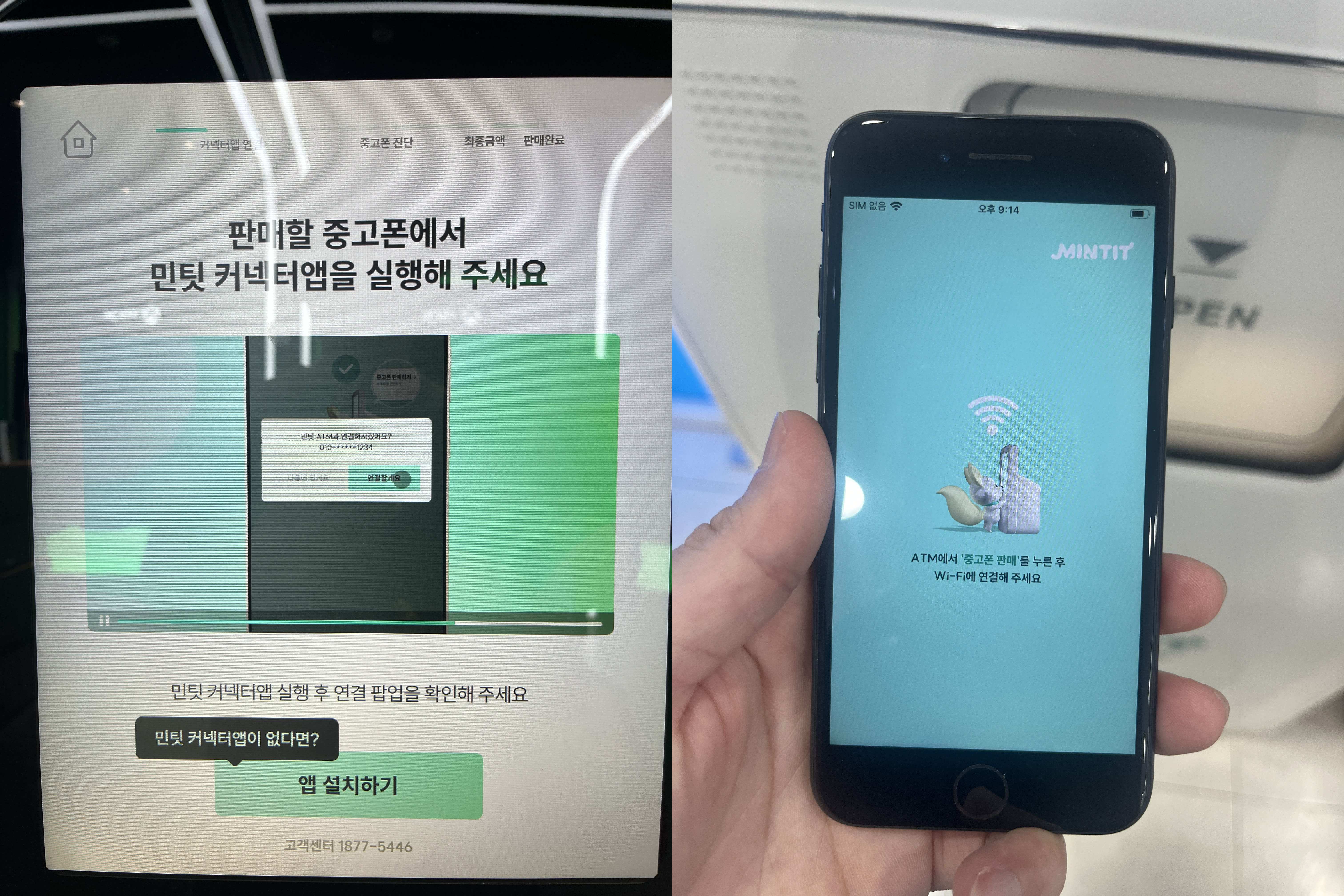 그러고 나면 판매할 중고폰에 미리 설치한 민팃 커넥터 앱을 실행하고 ATM 기기에서 하라는 데로 하면 된다. 미리 깔지 않아도 ATM 기기에서 설치가 가능한 방법을 친절히 알려줘서 바로 가능하다.