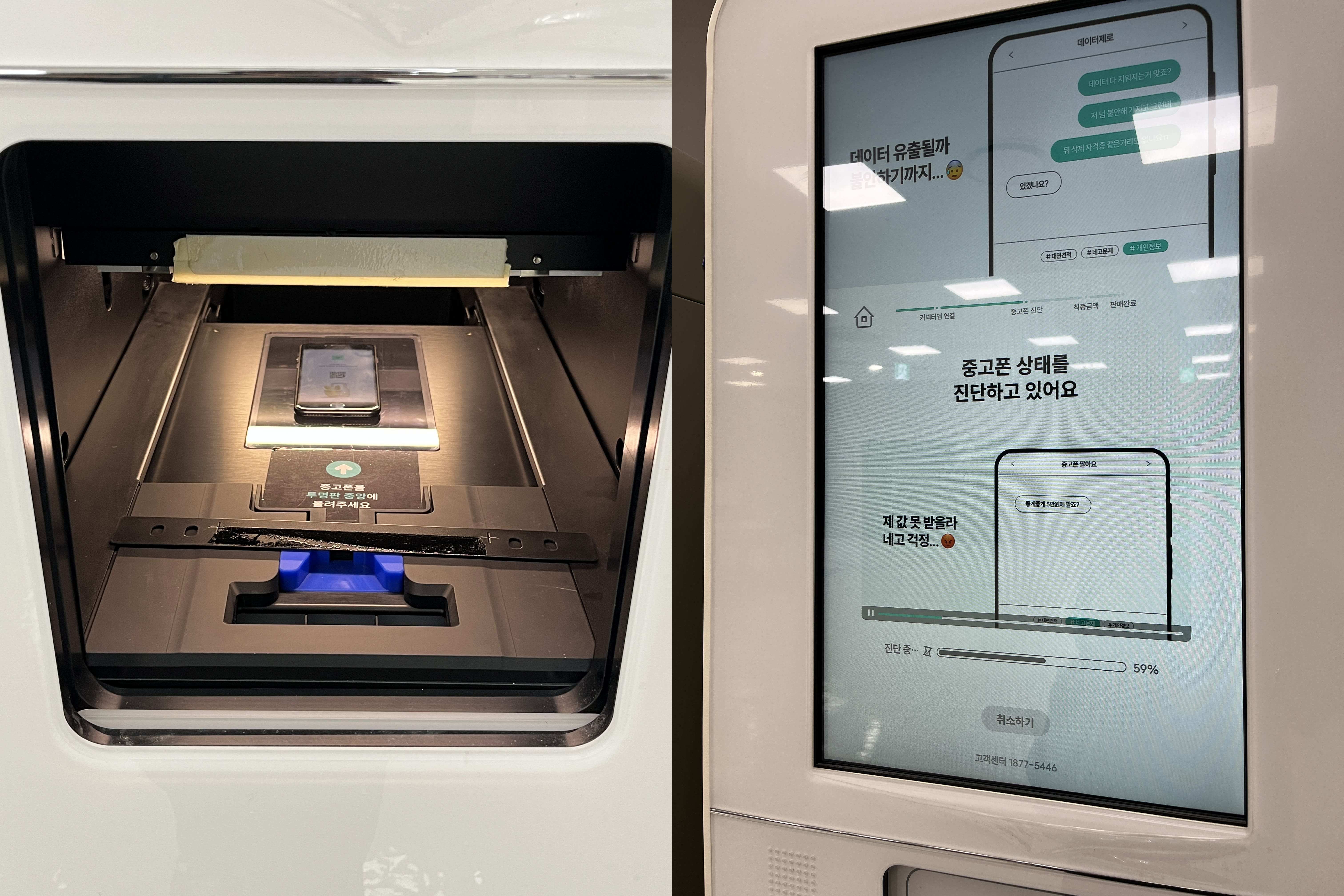 그러고 나서 인증을 마치면 ATM 아래가 열리면서 폰 넣으라고 한다. 그리고 나면 이제 진단 시작