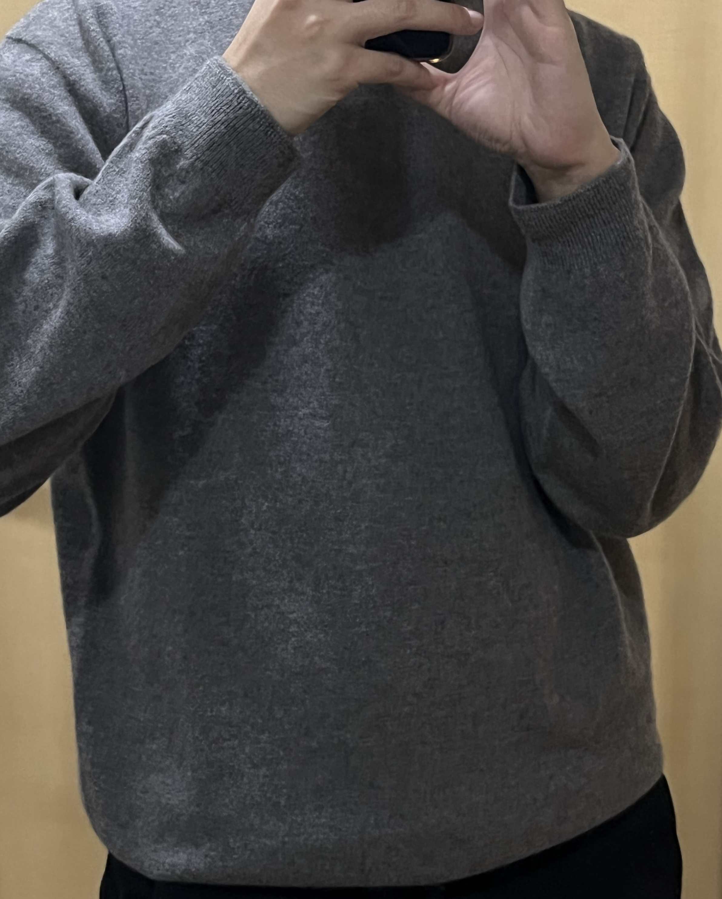 생각하는 니트보다 얇은 니트라고 해서 유니클로의 메리노울 혹은 캐시미어 니트 두께 정도 되려나? 했는데 그것보다는 좀 더 두껍다. 유니클로 기본 램스울이랑 비슷한 두께의 느낌? 근데 메리노울이라 진짜 엄청 부드럽다. 넥라인도 적당하고 소매 길이도 나한테 딱 맞아서 너무 좋았다. 채널에서 설명한 내용과 동일한 느낌을 받았는데 앞으로 종종 에센셜템은 여기서 사야겠다.
