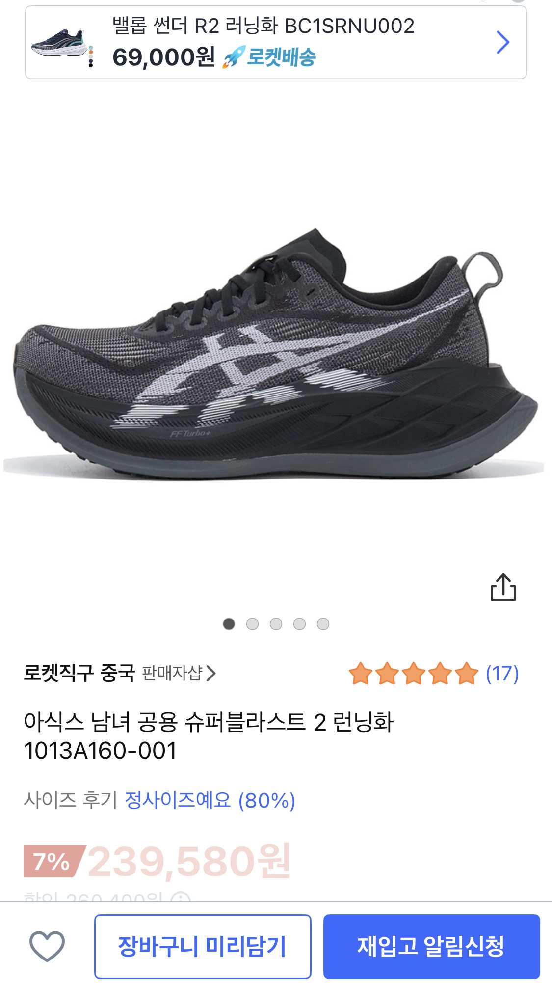 나도 이번에 슈퍼블라스트2 구입을 위해 일본 아식스나 크림, 중고 등을 들락날락거리다가 발견한 것이 쿠팡 로켓 직구다.