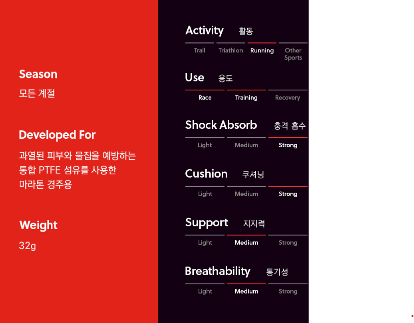 그리고 이 양말을 신고 풀코스를 뛰어본 결과, 확실히 초보자나 안정적인 완주를 위한 사람들에게 적합하다. 양말보다는 신발과 내 자세 때문인지 엄지발가락 일부가 양발 다 물집이 생겼고, 왼쪽 엄지발톱에는 멍이 들었지만 그 외 다른 부분은 괜찮았다. 얇은 V4.0을 신었다면 발이 더 아프지 않았을까 싶기도 하다. 적당한 두께라 한 여름만 제외하고 나머지 계절엔 다 잘 신을 수 있을 것 같다.